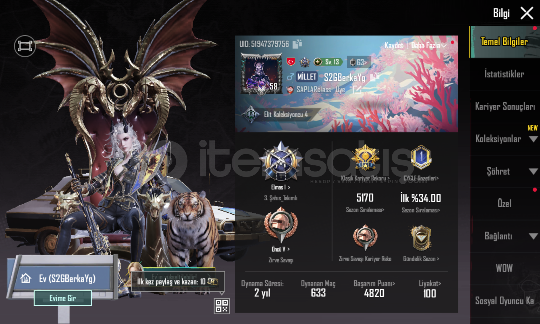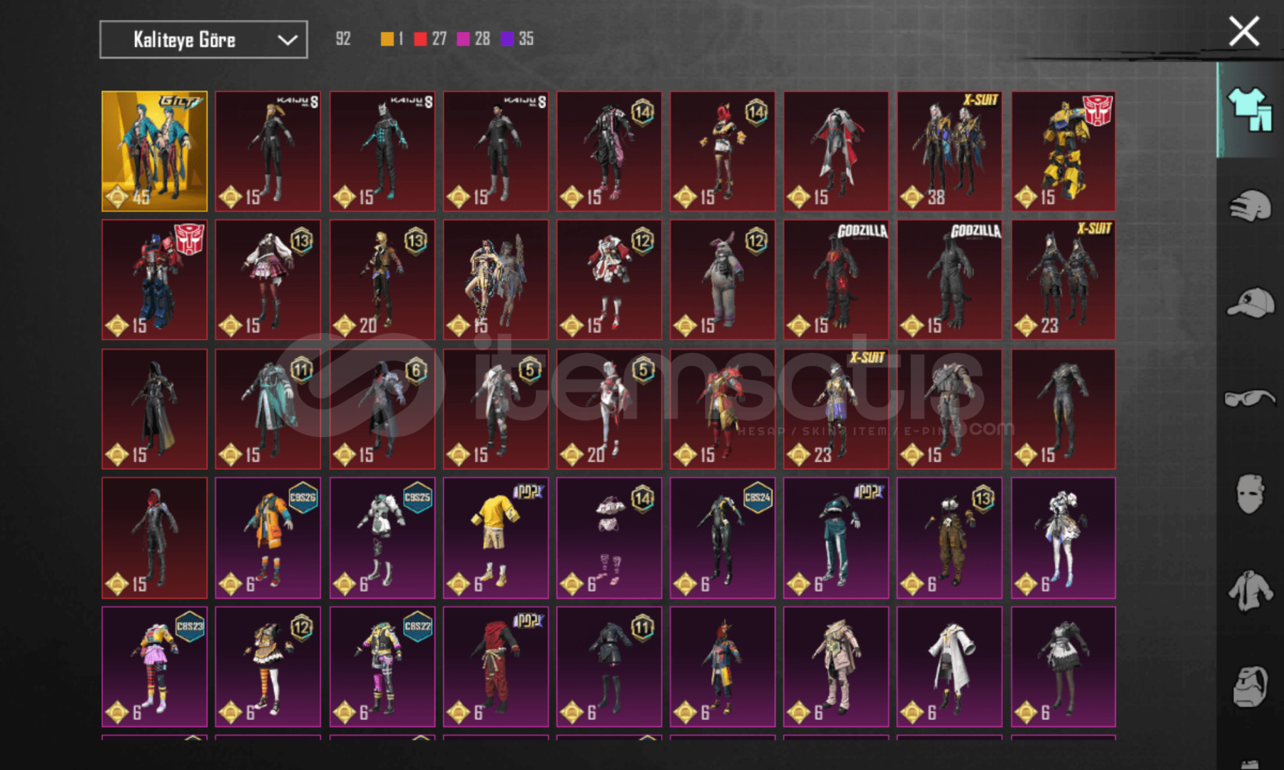 FULL DOLU HESAP HESABIN İLK KULLANICISIYIM 2 SENE OYNADIM HESAPTA:3 X-SUİT ( FİRAVUN-ANUKRA-DRAGON)VAR.1 GİLT( NİHAİ SET)(SEMAVİ ASİ SETİ)14 YÜKSELTİLEBİLİR SİLAH; RUH BİÇEN-UMP45 ALTIN PENÇE-P90 KAN PARAZİTİ-DP28 KAHRAMANLIK AĞIDI-AWM YARIN OPERASYON-SCAR-L ATOMİK TETİK-S12K MAMA TABANCASI-SCAR-L BAKIR GEZGİN-NS2000 GODZİLLA SAVAŞ BALTASI YAMALI TAVŞAN-MK47 D...