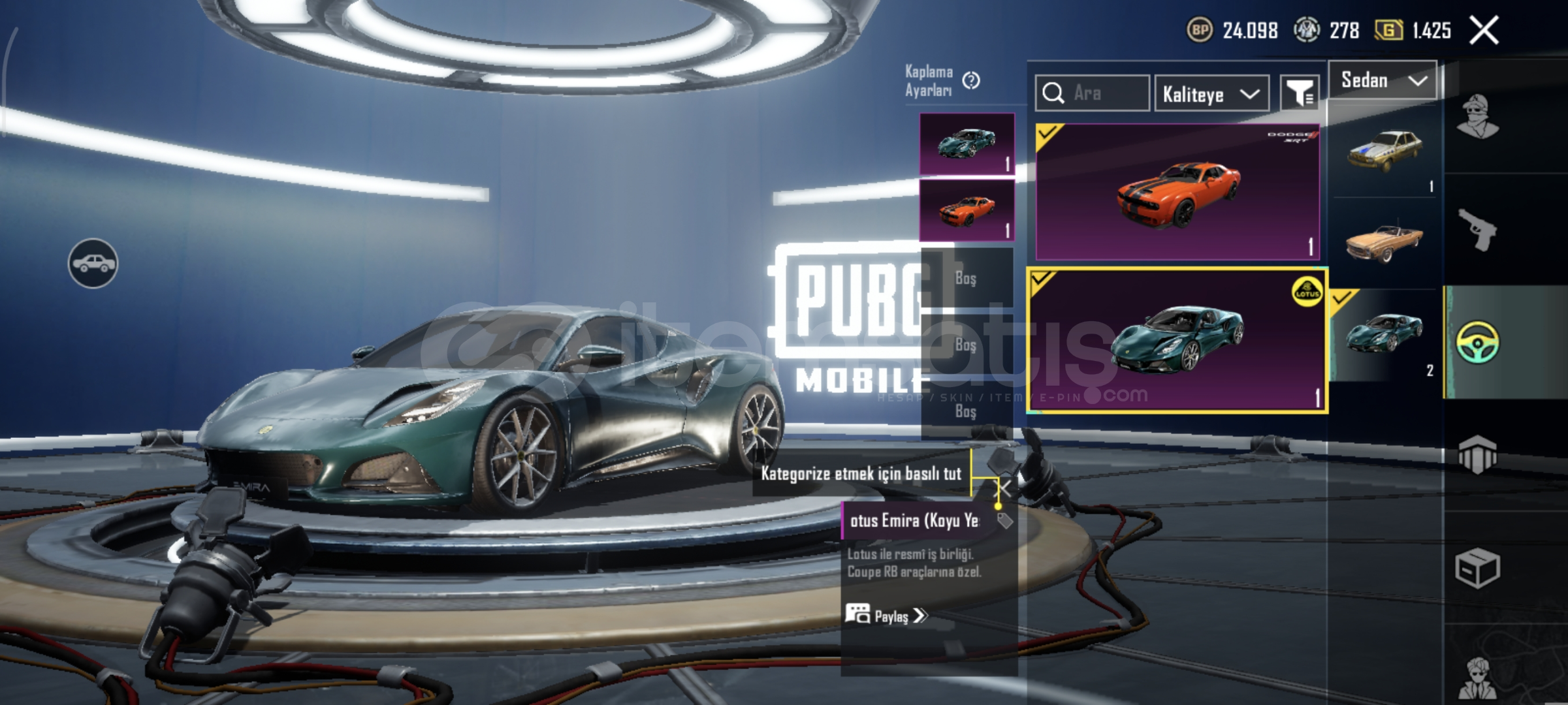 Hesapta 2 Spor Araba bulunmaktadır.