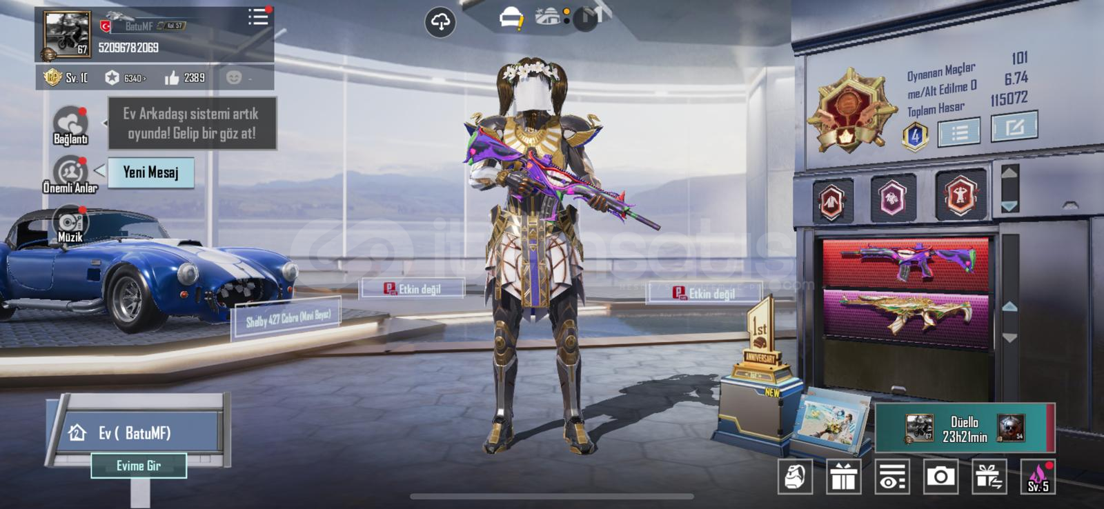 PAZARLIK VARDIR(SİLAHLAR) maskara m4-maxx/ küçük midilli m7-4seviye/ 8 bitlik patlama ump-4seviye/ yükselen ejderha mg3-maxx/ arındırıcı amr-4seviye/ gece gladyatörü bizon-maxx/ yakan kükreme m4-4seviye/ kumral krallığı akm-4seviye/ altın pençe p90-4seviye(ARABALAR) godzilla uaz/ endüztriyel uaz-1seviye/ kağnı titan dacia/ tatlı hülya üstü açı-1seviye/ shelby 42...