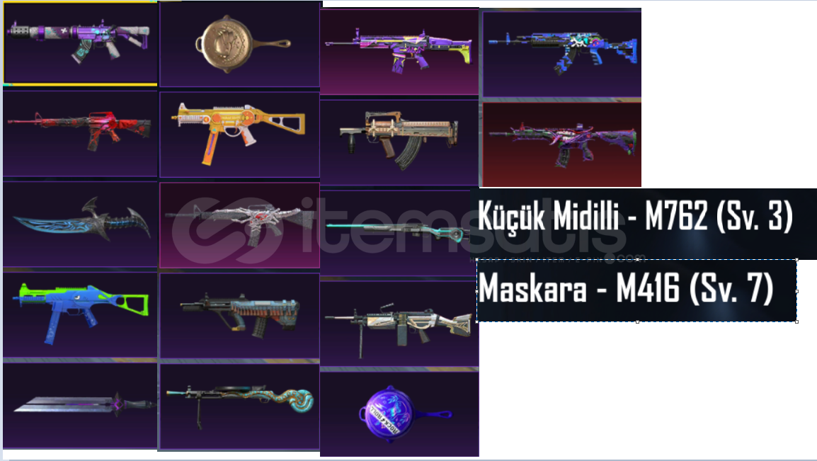 Siyah BugattiMaskara M416 7 SeviyeM762 Küçük Midilli 3 Seviye 15+ Silah15+ Emoji66 Destansı⭐TEK BAĞ EPOSTAALANA HAYIRLI OLSUN...İsteyene Mail devredilecektir ya da e posta değişikliği yapılacaktır.abartmadan pazarlık olabilir.