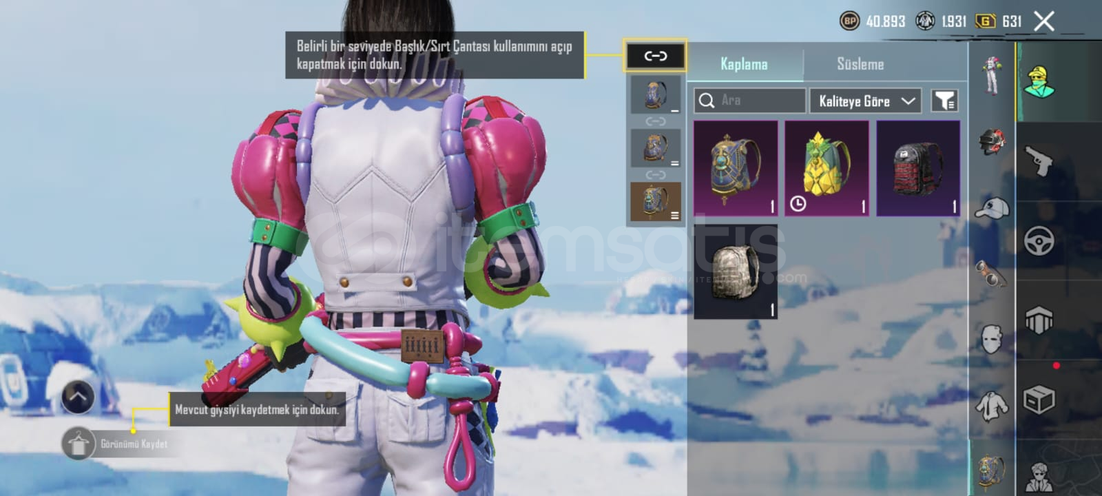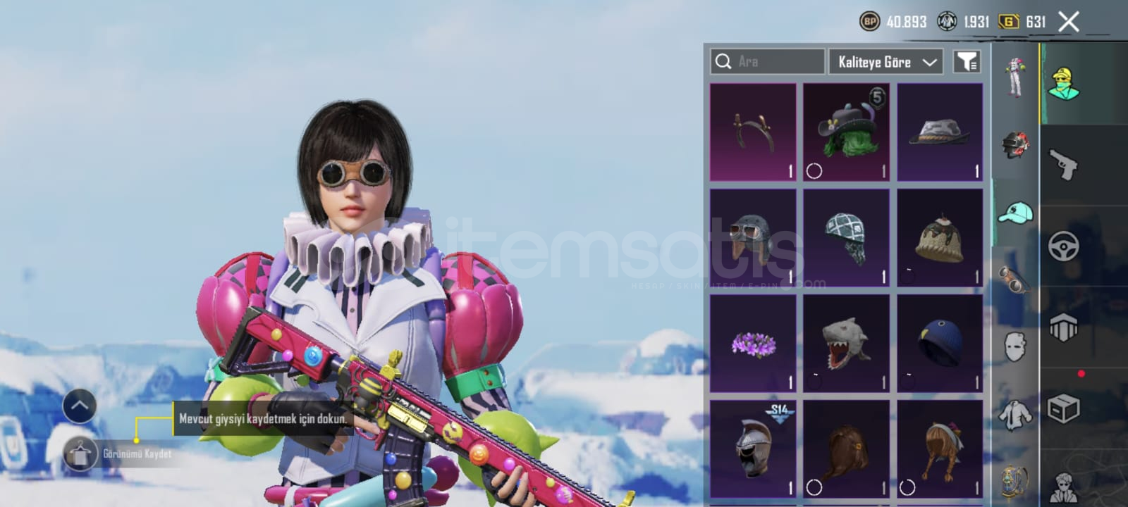 🎮 Hesap aktif olarak oynanmış, tamamen bana ait, hiç ban yememiştir.🔥 Kostüm ve eşyalar arasında nadir ve koleksiyonluk setler bulunmaktadır.💎 Öne çıkanlar:Renkli full set (Candy temalı)Farklı efsanevi kostümler ve maskeler4 adet özel sırt çantası (Ananas, Mavi Taç vs.)Silah kaplamaları: AKM, SCAR-L, M416, GROZA, AUGRP16 aktif, önceki sezonlardan ödül...