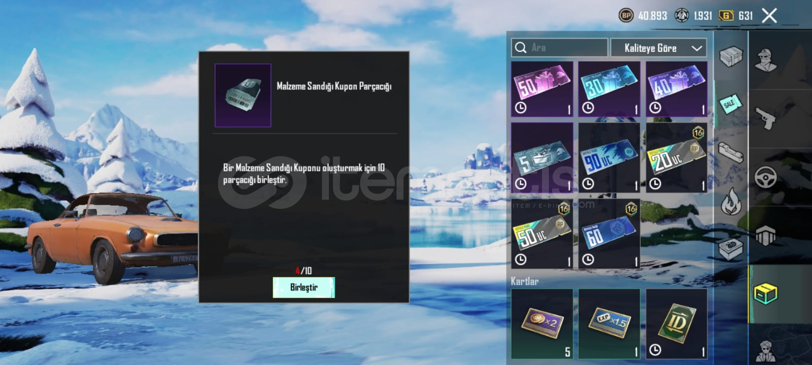 • 1.931 Gümüş Parçacık + 40.893 BP + 631 G-coin