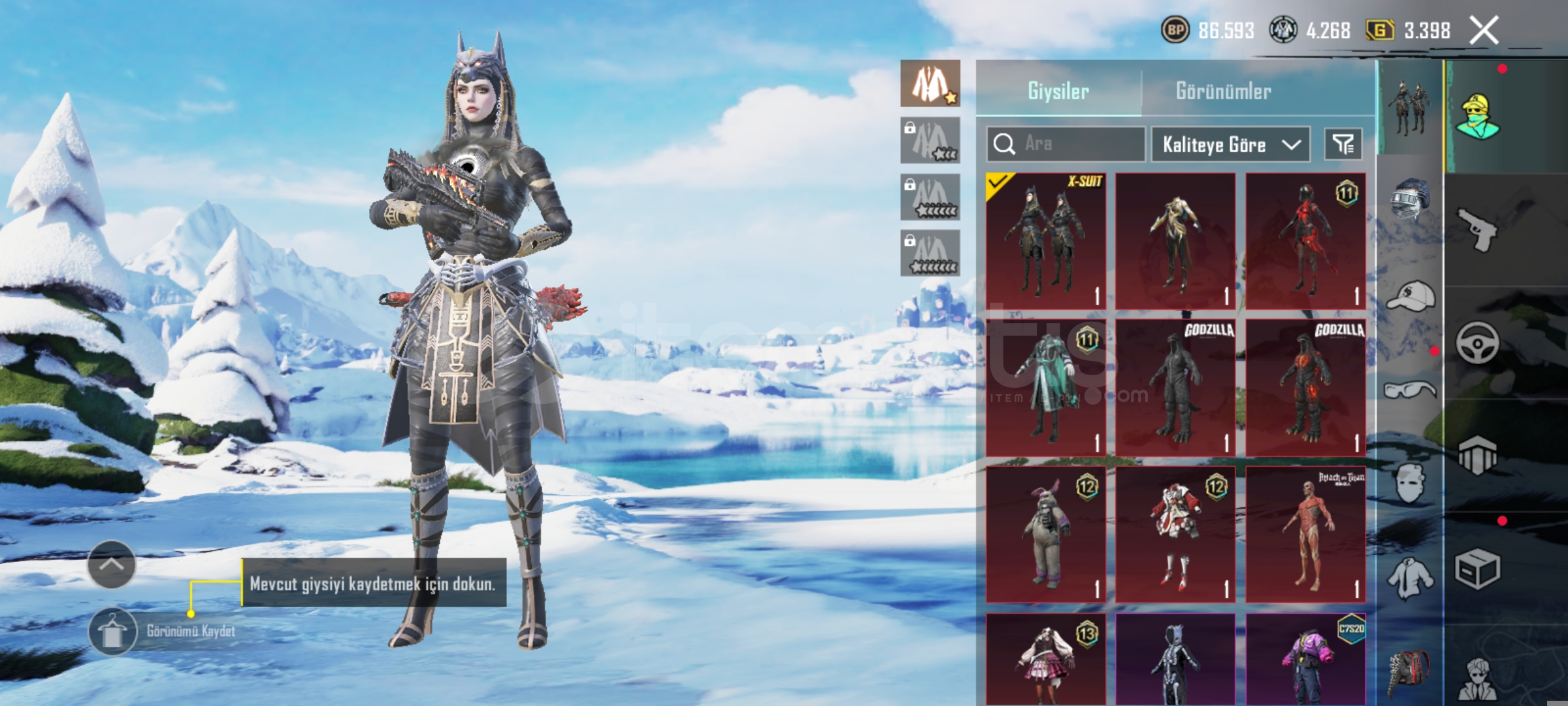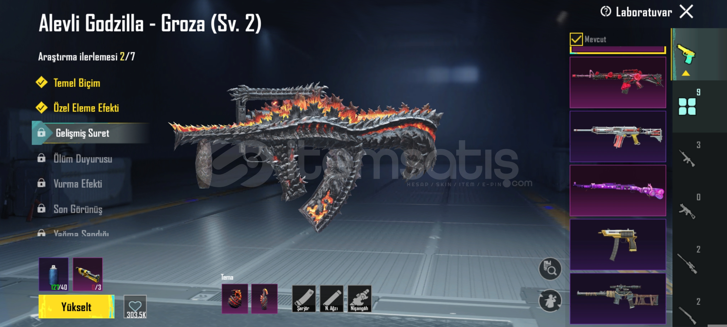 Hesapta 9 yükseltilebilir desen var 4 tanesi full Godzilla kıyafeti var extra olarak