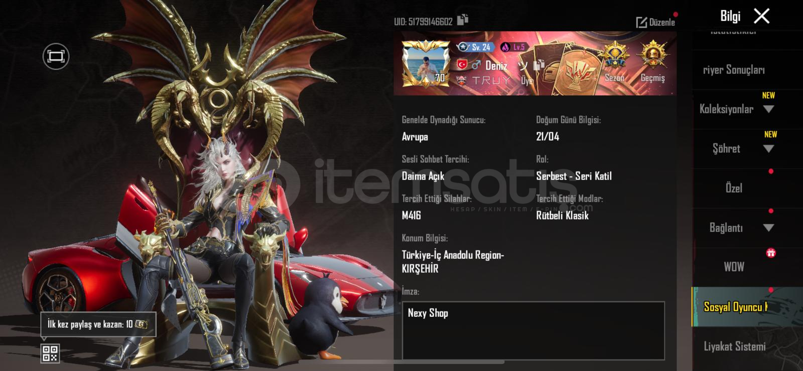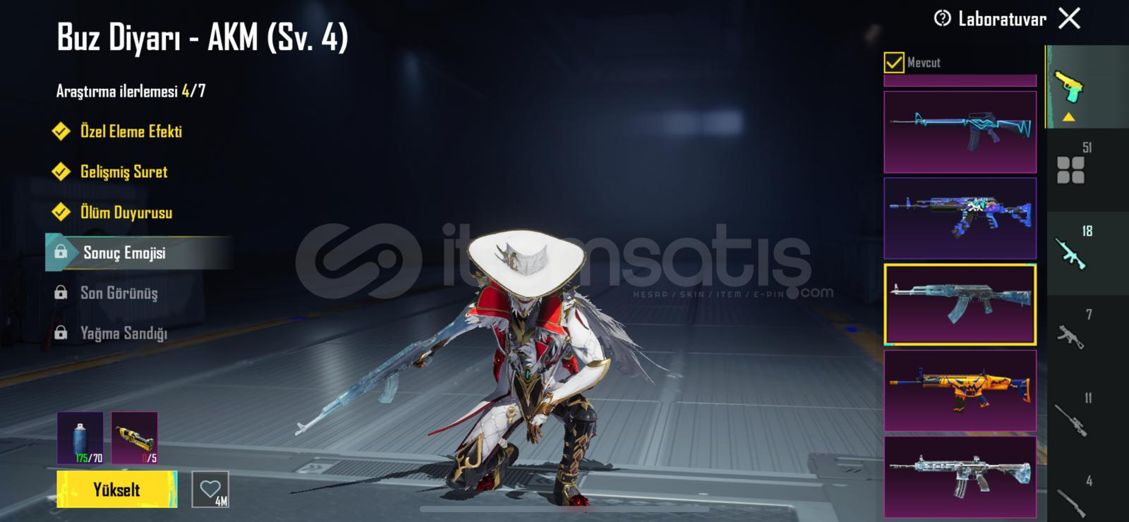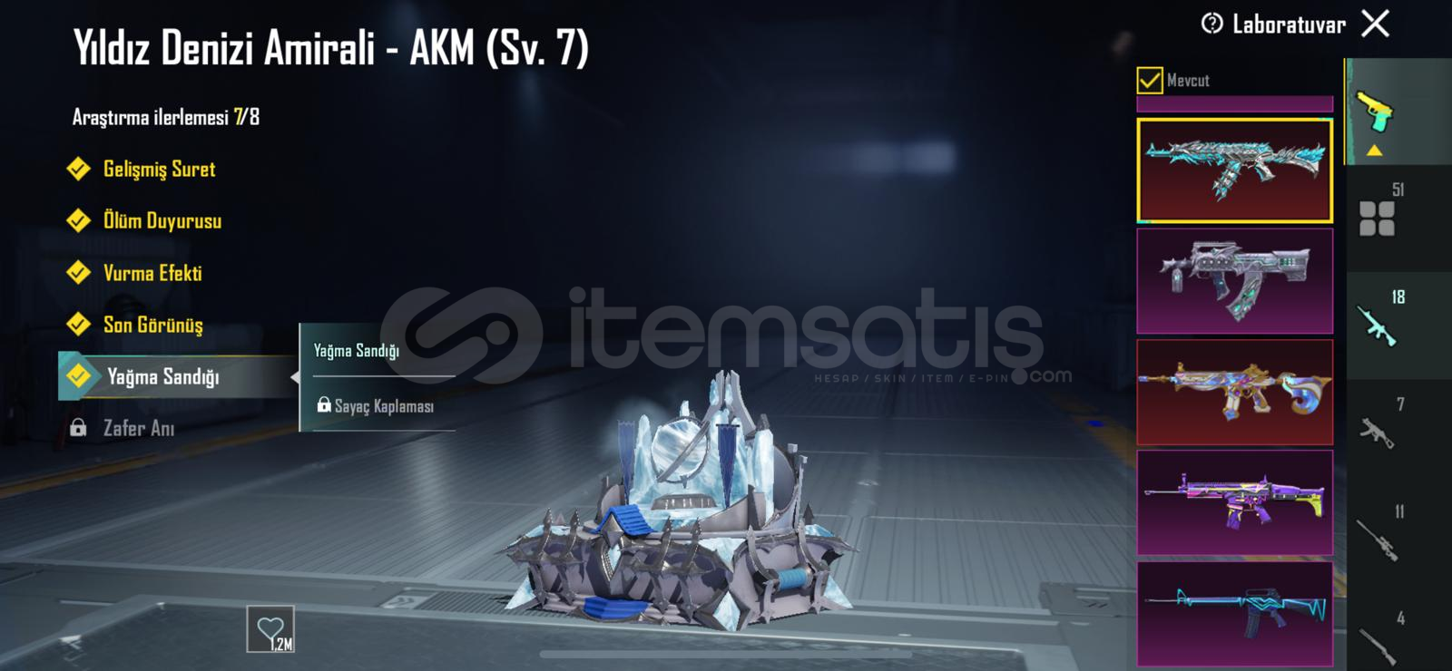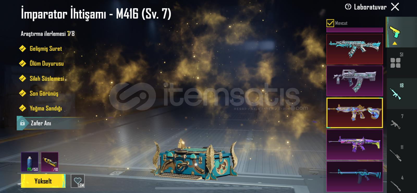 50 geliştirebilir silah 3 kendinden yükseltilmiş mevcut m416 maks ump maks akm maks 25kil mesajı yeni gelen nihayi sete 6 parça vardır direkt alabilirsiniz geldiği gibi