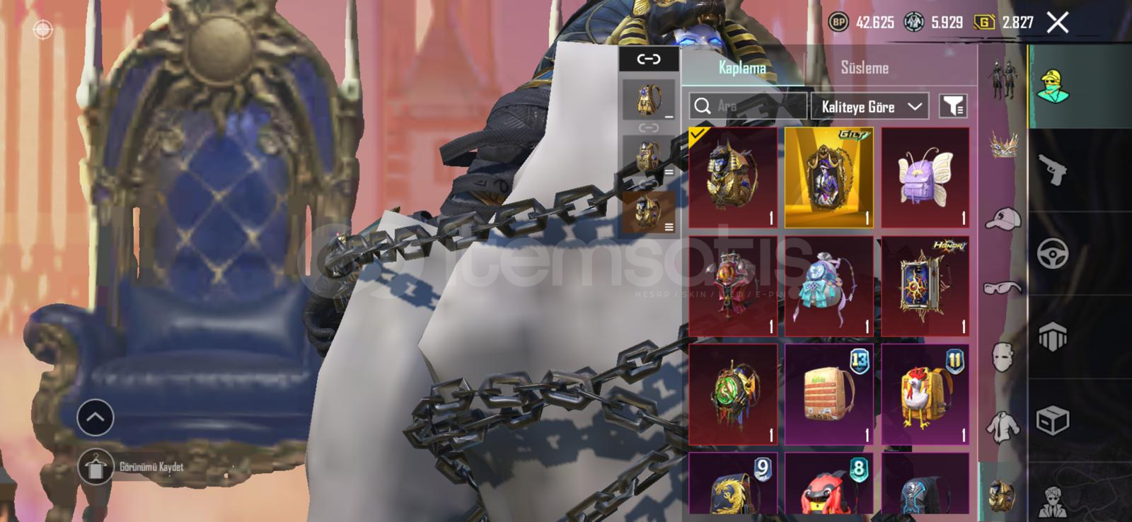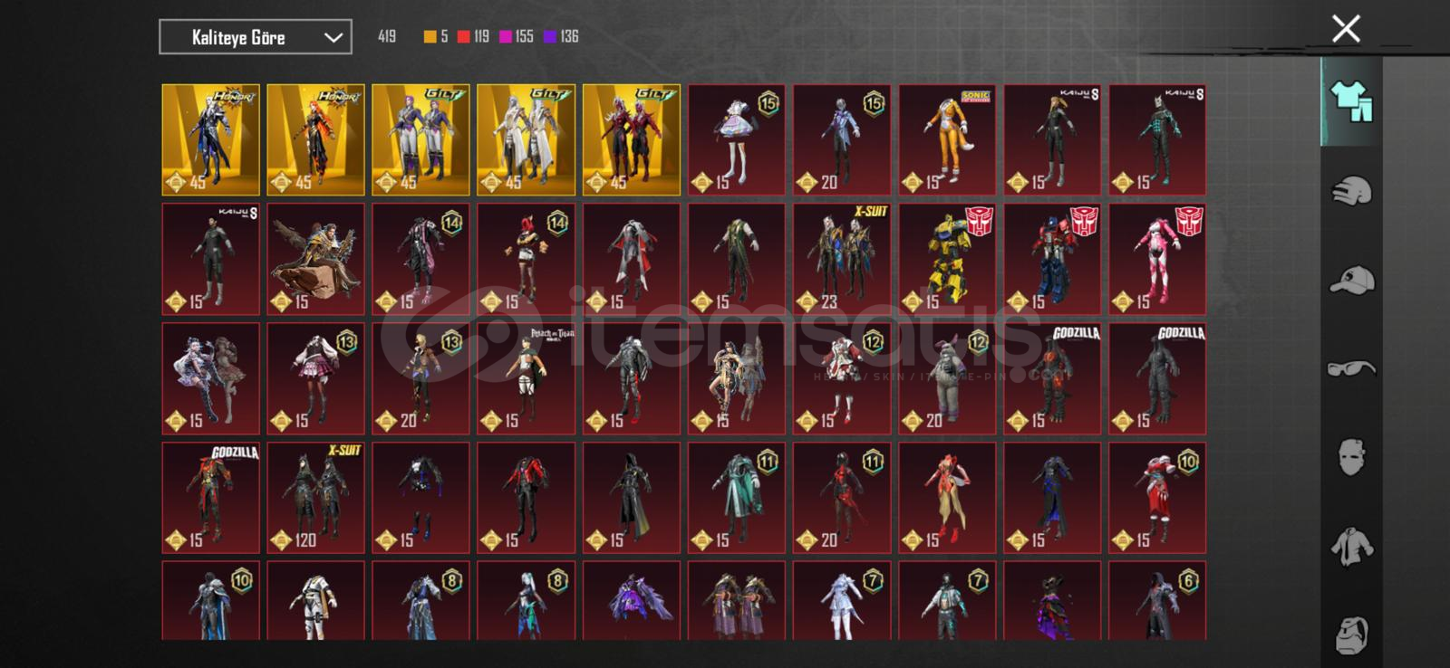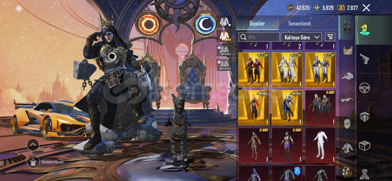 'Hesabın gerçek değeri 500.000 TL'dir. İlan üst sınırından dolayı fiyat 100.000 TL olarak girilmiştir. Ciddi koleksiyonerler için detaylı bilgi ve pazarlık için platform içi mesaj yoluyla ulaşınız.'—4 X Suit1 seviye firavun1 seviye yanardöner zırh1 seviye dravion5.seviye anukhra3 spor araba 2 si bugatti 1 i bumbelbee—5 gilt (2 si Astral Sema etkinliğinden )Ay ış&...