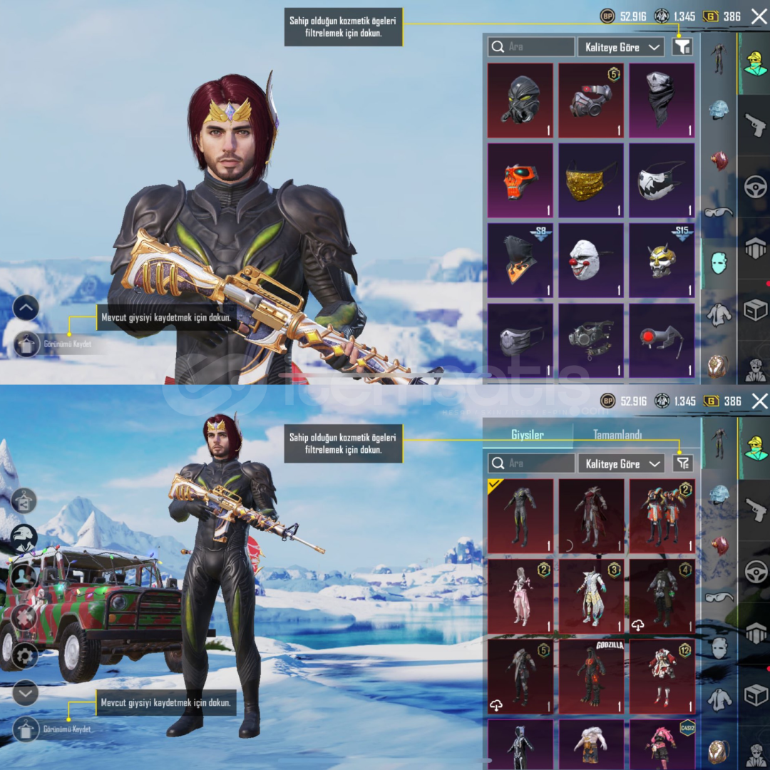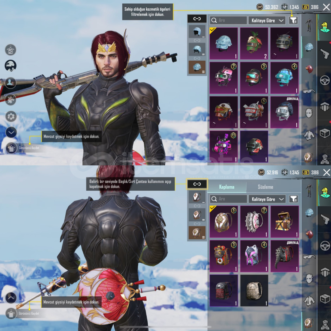 Ürün Hakkında Bilgiler⭐️⭐️[ 49.Seviye⭐️[ 6 Yükseltilebilir⭐️[ Hesapta Godzilla Set Godzilla Kask Ve Godzilla Çanta Mevcuttur⭐️[ 9 Destansı Kıyafet Mevcut⭐️[Hesap Para Yatırılmış Bir Hesaptır Dolular Dolusudur⭐️[ Gayet Güzel Oynamalık Bir Hesaptır⭐️[Aldığınızda Asıl Pubg Mobileyi Oynad&...