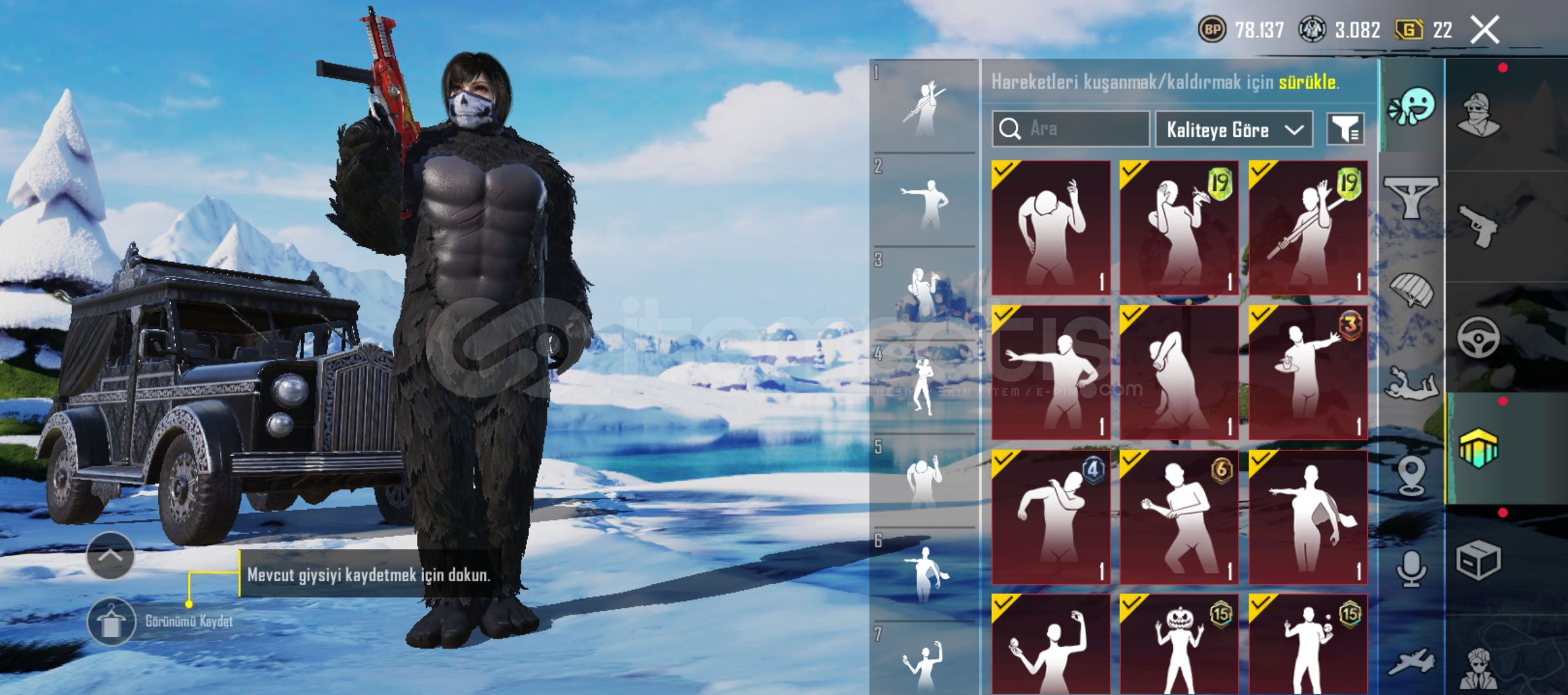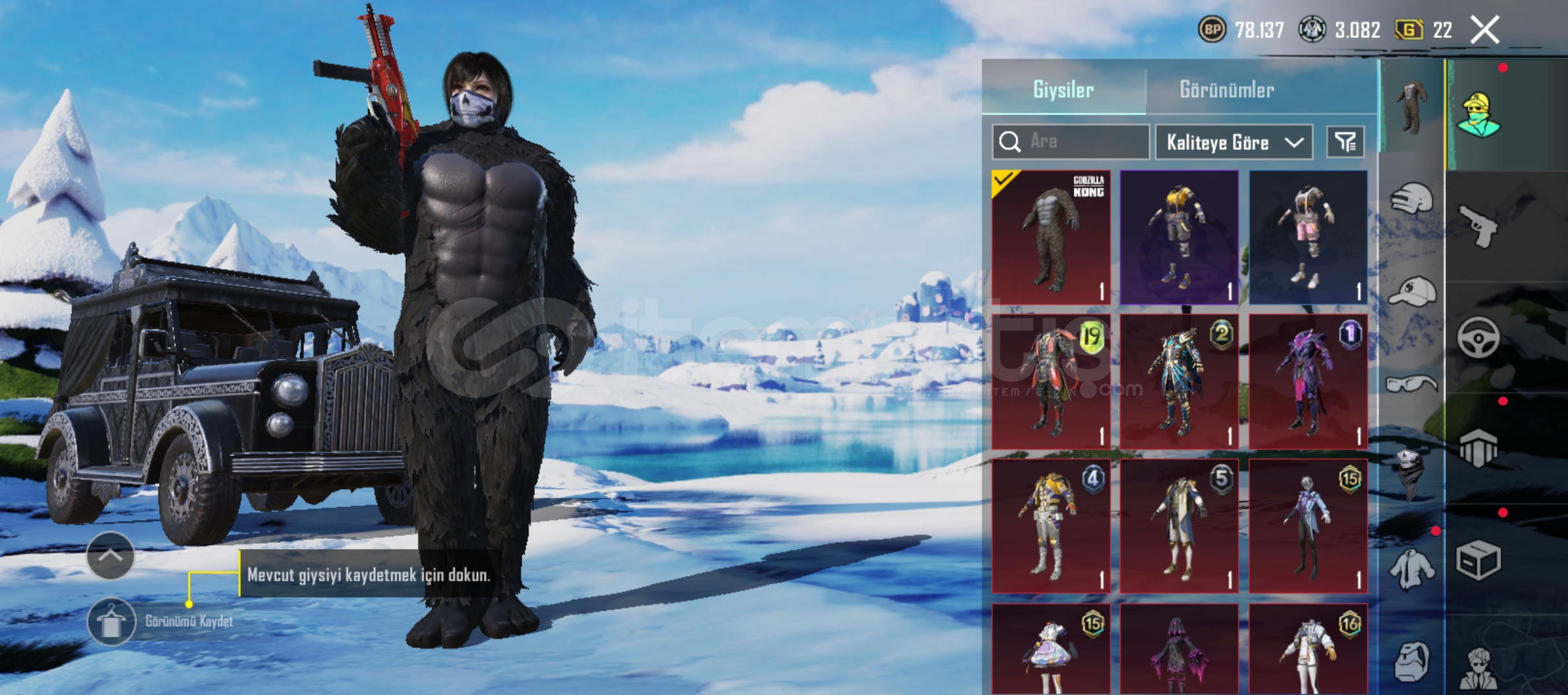 Godzilla Kong destansı setli nadir araç desenleri 1 malzeme 1 destansı amblem 250 uc mevcuttur RP açıktır 5 yükselt ile bilir UMP 3 seviye kar98 2 seviye uyguna bağlar direk devir edilecektir toplam 18 destansı vardır
