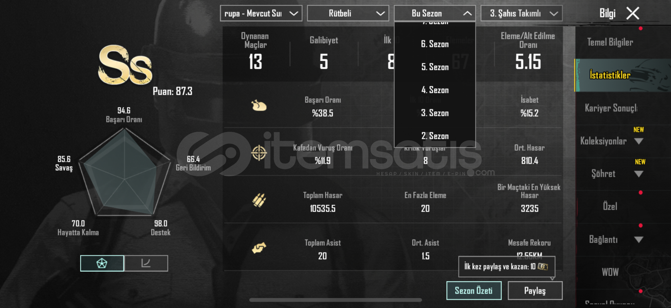 Güvenilirlik: Güv: 10/10 Memnuniyet: Mem: 10/10 İletişim: İlet: 10/10 Teslimat: Tes: 10/10
