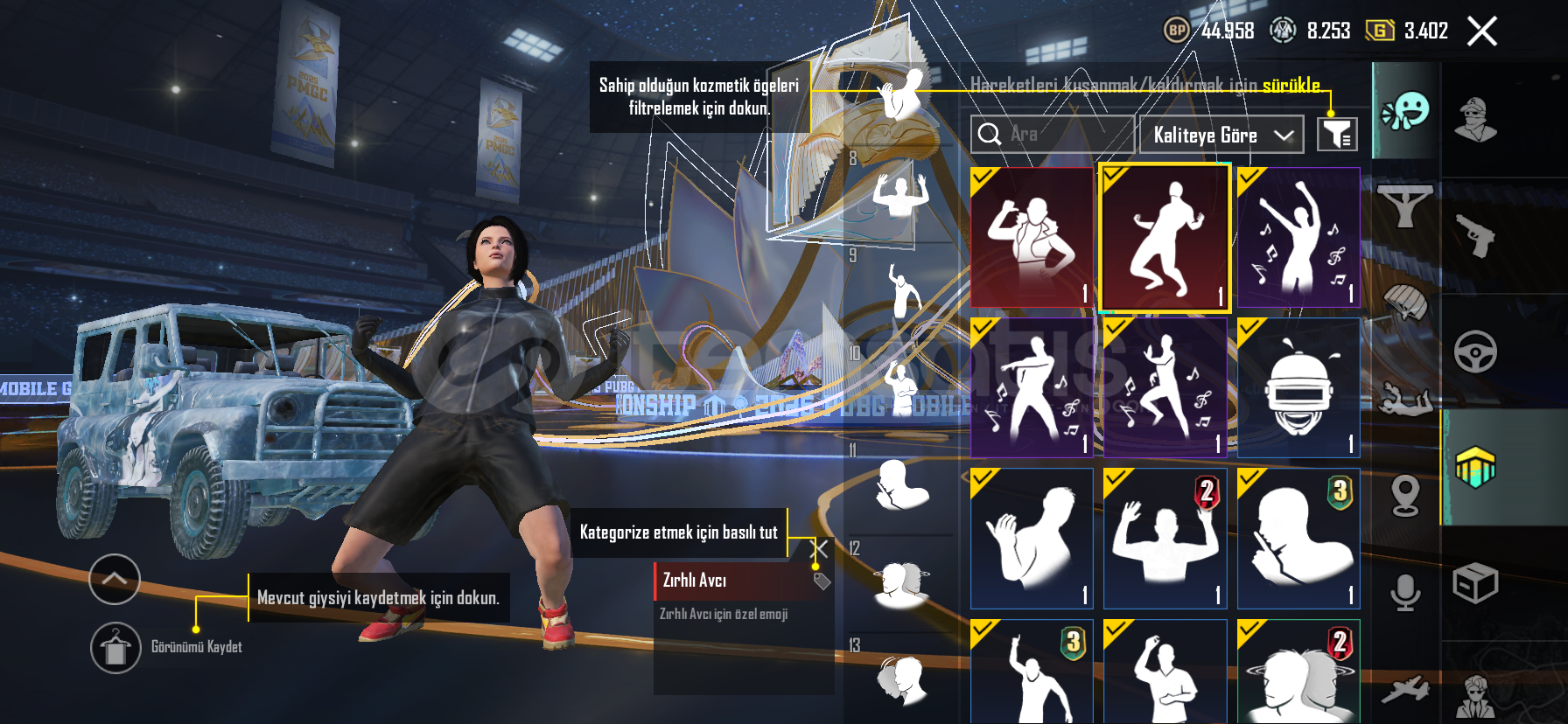 HESAP İÇİNDEKİLER : MEKANİK TAVŞAN ÖZEL EMOJİ ZIRHLI AVCI ÖZEL EMOJİ ESKİ SEZON EMOJİLERİ S4 SAÇ 2 ADET S4 YÜZ GÖREVİMİZ TEHLİKE A GÖREVİMİZ TEHLİKE B GÖREVİMİZ TEHLİKE A PANTOLONKOVBOY CEKET EFSANE KOMBİNLER BUZ DİYARI 4 SEVİYE SCAR-L 5 SEVİYE UMP ÖLÜM DUYURUSU 10 ADET YÜKSELTÜLE BİLİR SİLAH 2 ADET İ...