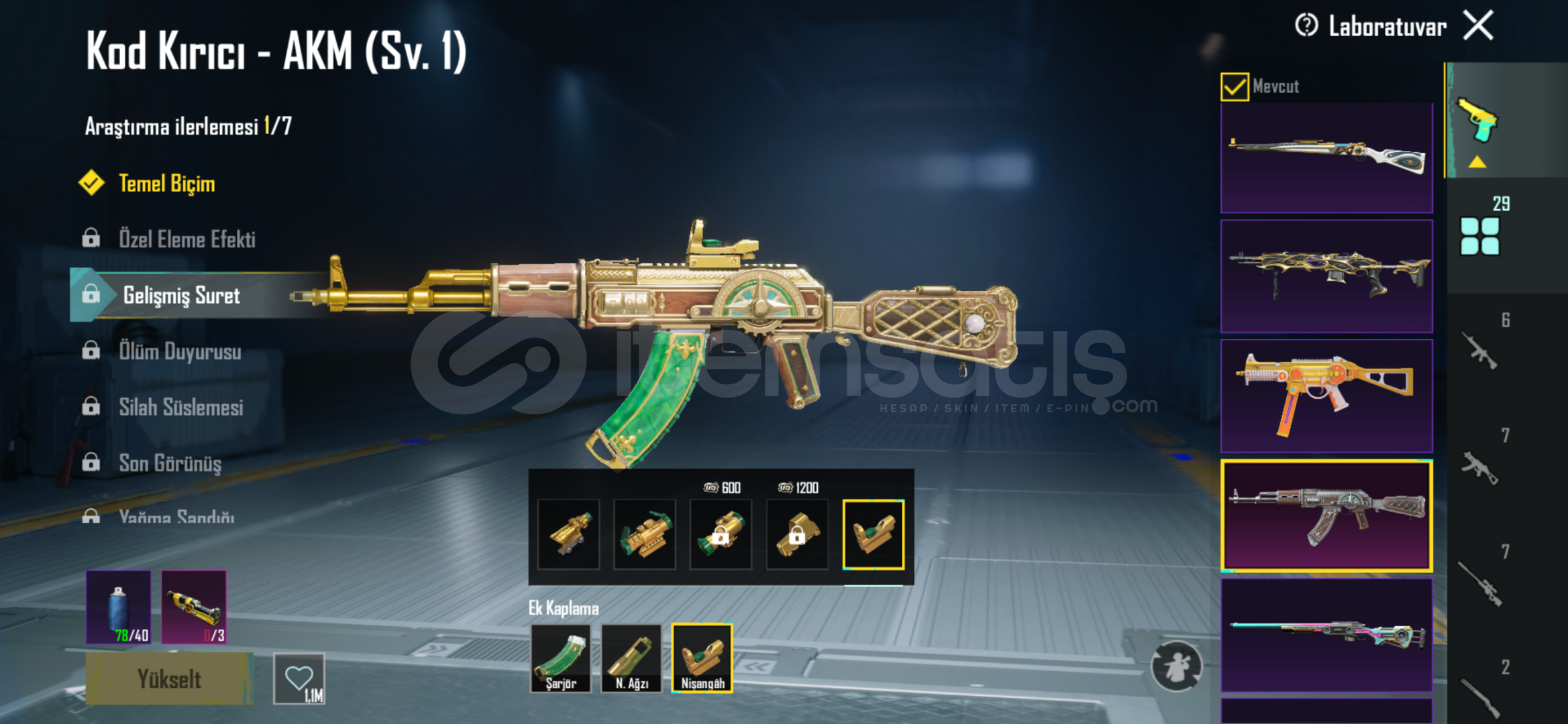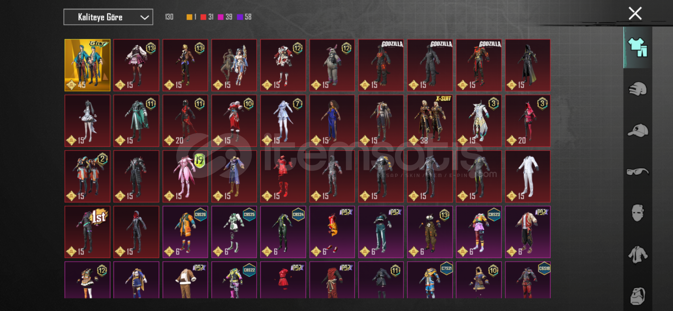 SELAMIN ALEYKÜM ARKADAŞLAR (SETLER) SEMAVİ ASİ SETİKOR ALEV ZIRH-X (2 seviye)SERİ KATİL SETİ İŞGALCİ SETİ5.YILDÖNÜMÜ SETİKUSURSUZ TETİKÇİ SETİ ÇELİK ASKER SETİ ÖLÜM MAKİNASI (29 TANE YÜKSELTİRİLEBİR SİLAH)YAKAN KÜKREME M4 (5SVY)ÖLDÜREN NAĞMELER M24 (4SVY)YÜKSELEN EJDERHA MG3 (4SVY)ALEVLİ GOZDİLLA BALTASI...