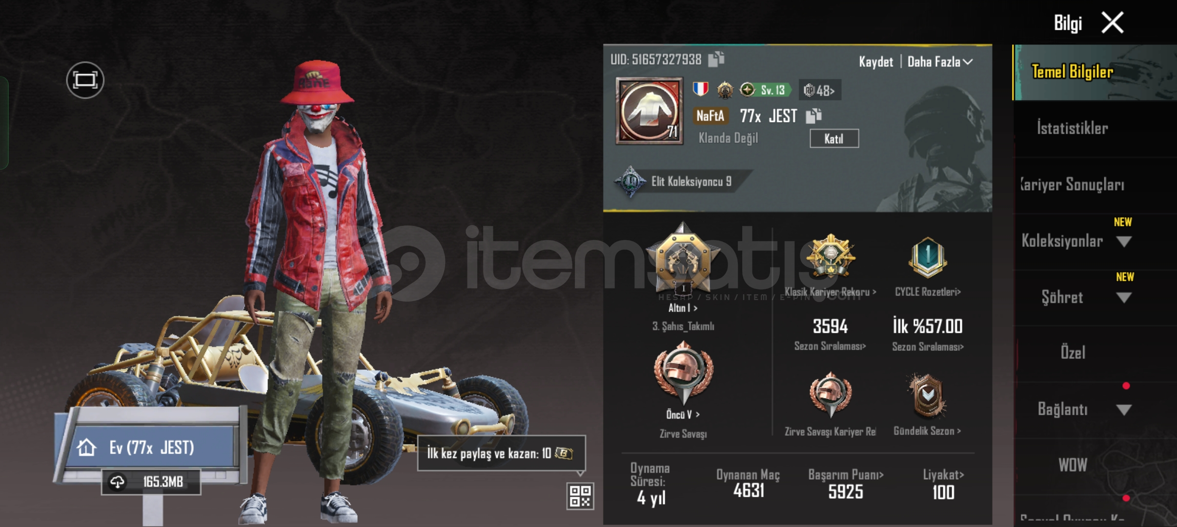 Pubg hesabı alacağım acilen satılık (Koleksiyonda 47 destansı gösteriyo ama 49 destansı)
