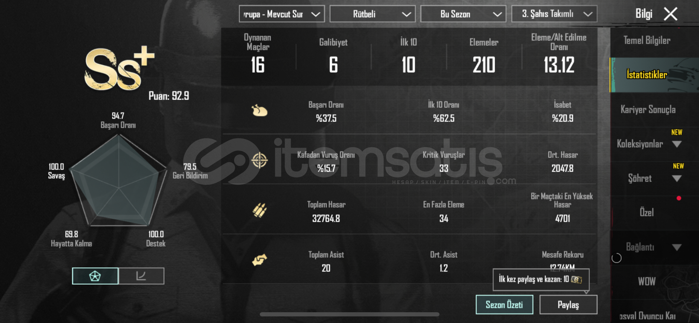 PUBG Hesabı alan kişi memnun olur elmas 2 rank el 62 Fatih görmüş hesap yükseltmiş s12k 4 sv ump 4svvb. Alacak kişiye şimdiden hayırlı olsun