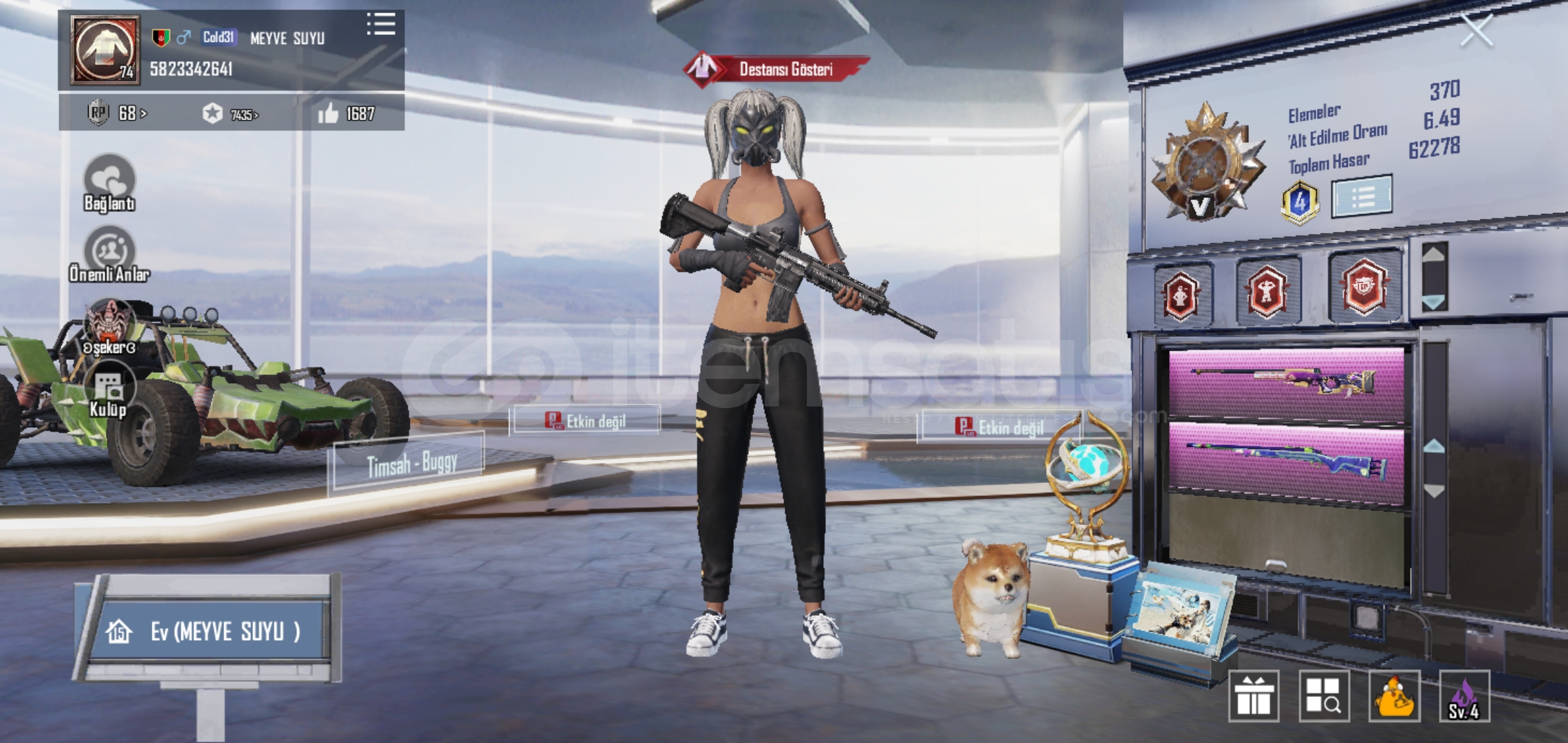 Hesapta goggle bagi vardır alt bağlar vardır devredilmicektir güvenli cihaz olmadığı için eyer clanirsa para iadesi yaparim rahatta kalın yani sıkıntı çıkarsa 10 yukseltilebilir midilli 4 m24 4 leveldir