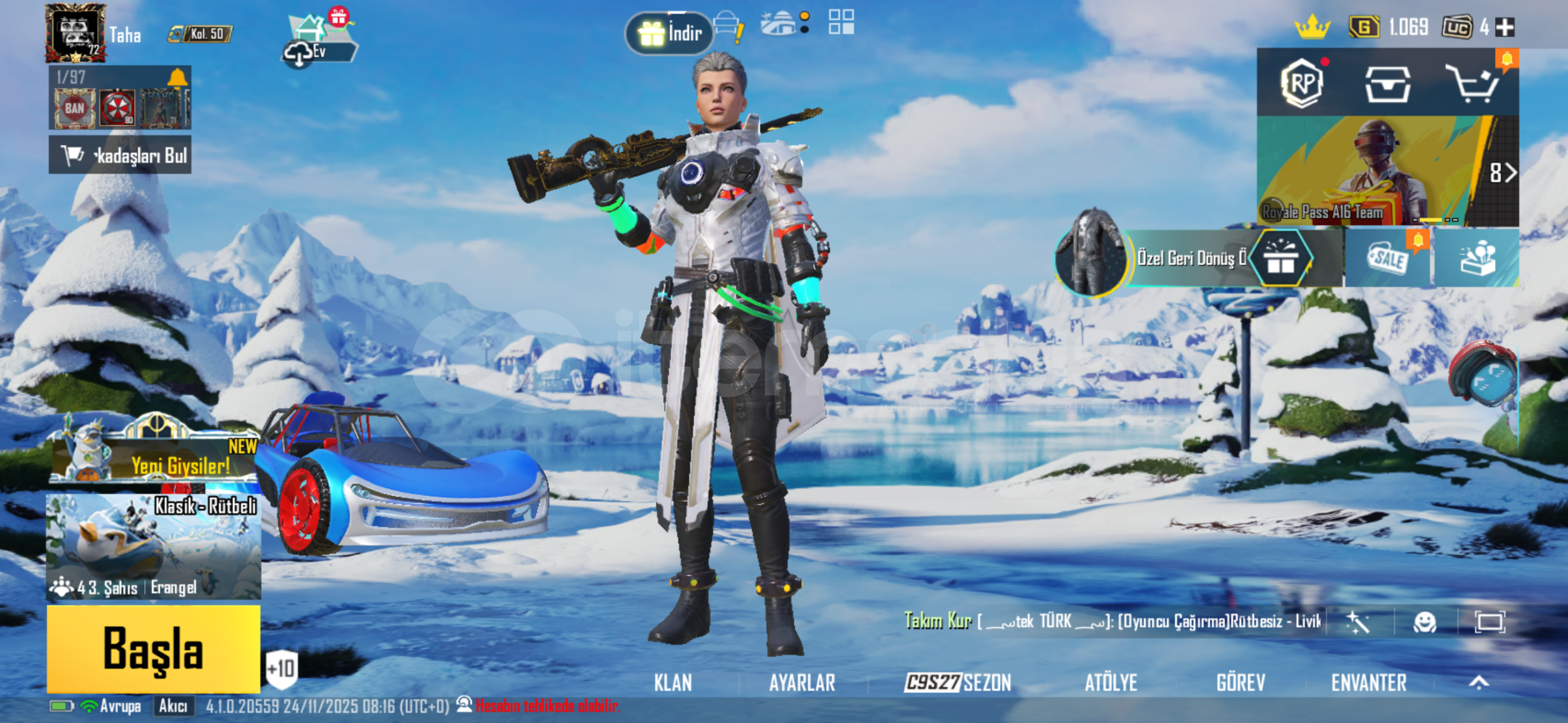 Hesapın içinde yok yok X-suit mevcut Awmsi var ölüm duyurulu silahlar varEskilerden mavi üst siyah üst var