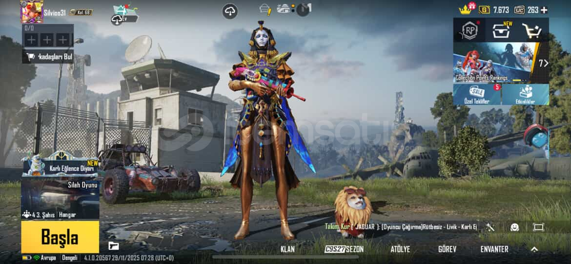 81 level 263 uc 8k ag  rp si açık ve 80 leveldehesabın tüm bağlamları sorunsuzdur istediğiniz şekilde halledelir ve ilk mail verilecektirfiravun mumya godzilla setleri işgalci ve daha fazla popüler kıyafetler200+ adet kırmızı 500+ pembekıyafet353 adet silah skini 37 adet geliştirilebilir silah deseni7 uaz 3 sedan 10 motosiklet10 buggy 6 tekne5 diğer100 adet kır...
