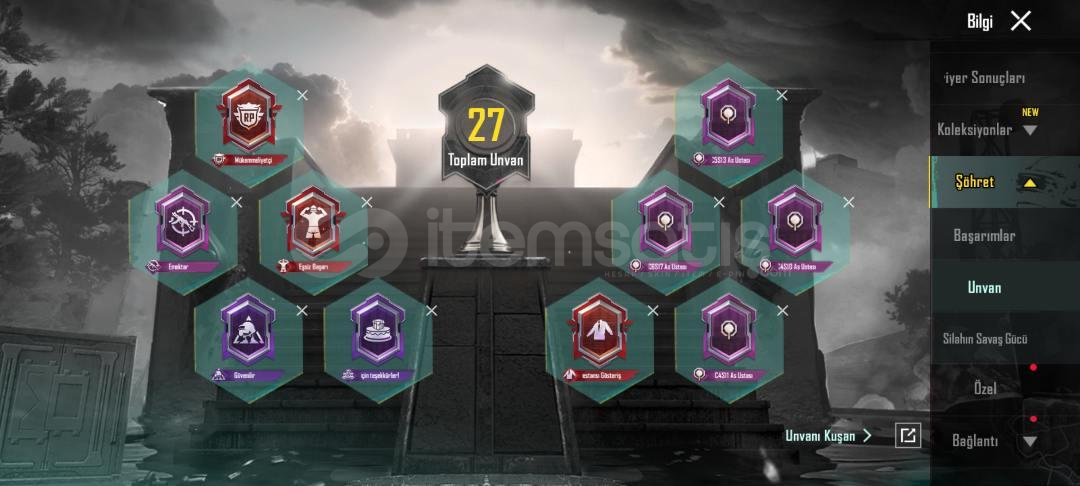 ●2 x suit ikiside 2 sv●68 destansı kıyafet●19 yükseltilebilir silah, 8 i ölüm mesajlı●71 sv hesap 55 koleksiyoncu sv●27 ünvan ●2 adet yoldaş(1 i destansı)● royale pass harici 16 destansı emoji●Ump 3 adet ölüm mesajlı silah●dolar alt,üst set●firavun paraşüt,destansı planör●buz kask,2 destansı ve 2 nadir çanta●4 destansı ...