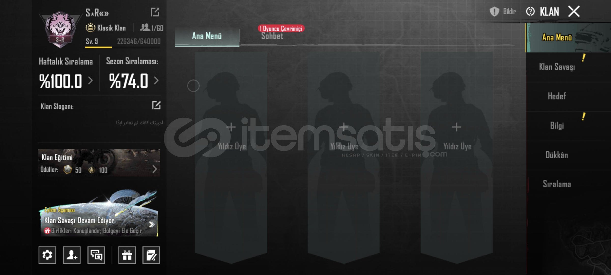 SAMET MARKET GÜVENCESİYLE GÖNÜL RAHATLIĞIYLA ALIŞVERİŞ YAPABİLİRSİNİZ 100+ Başarılı İşlem 10/10 Müşteri Memnuniyeti🌹❤️İSİM DEĞİŞTİRME AÇIKTİR❤️Efsane Klan İlanda Bu Fiyata Yok Kaçmaz Alıcısına Şimdiden Hayırlı Olsun