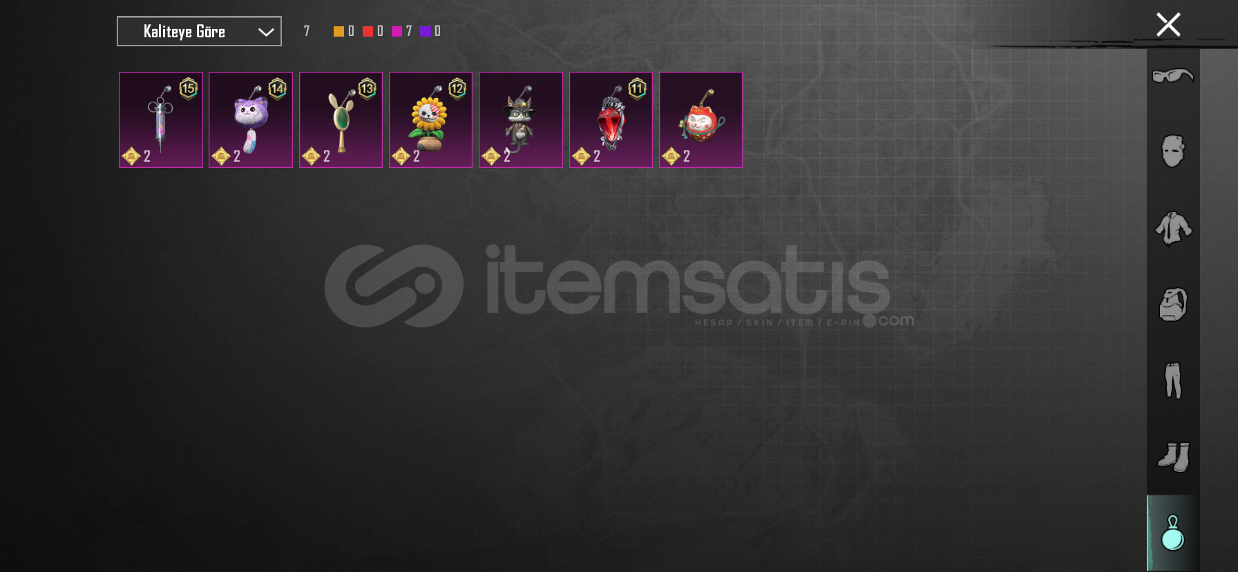 60 seviye 39 seviye koleksiyonson 6 sezon royale pass fullendi helikopter dahiliçerisinde 320uc vardır7 adet destansı amblem236 adet uğurlu paraVe sslerde gördüğünüz şeyler hesaba birşeyler daha ekleyip güzel bir hale getirebilirsiniz 7 yıllık hesaptır
