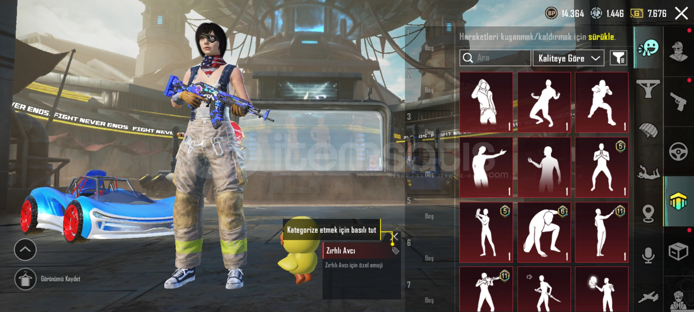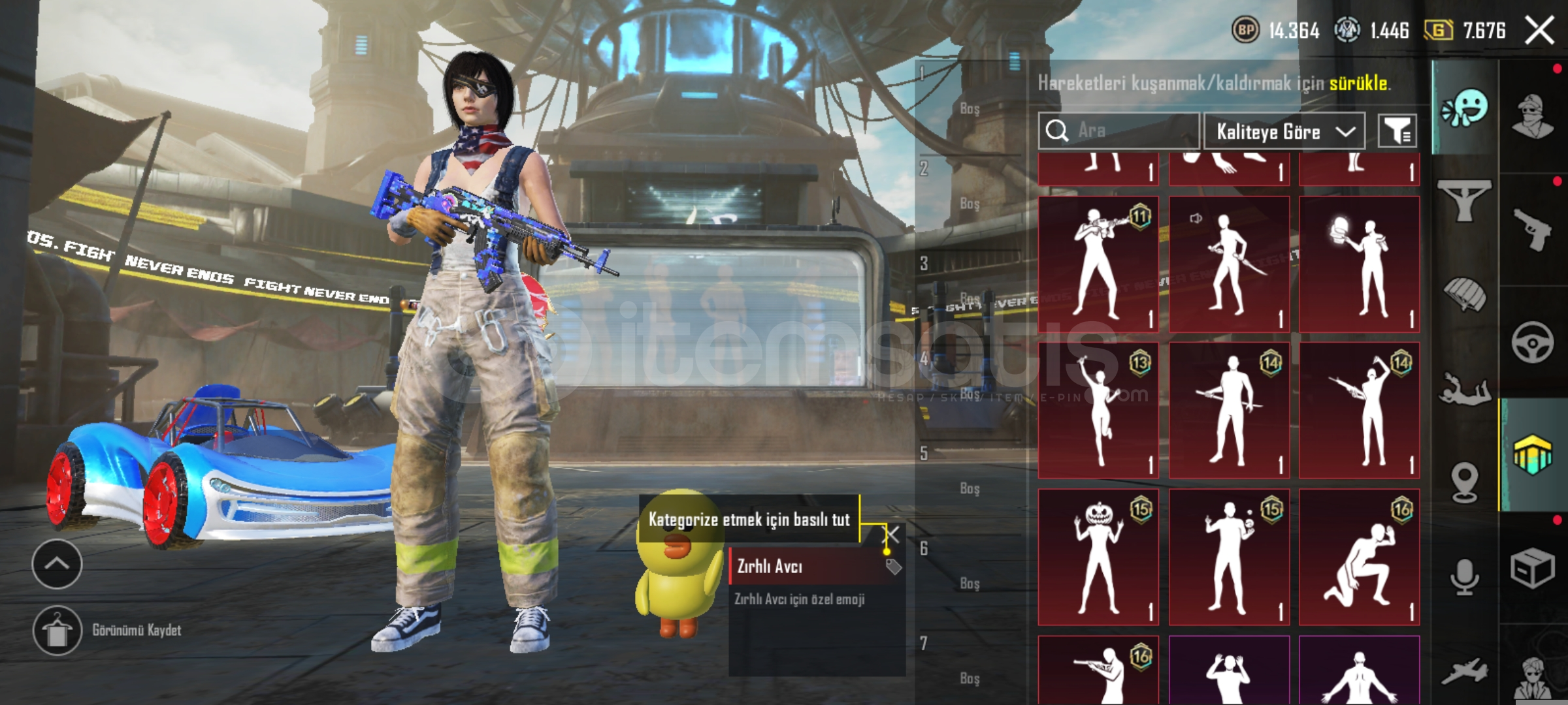 Hesapta komutan alt-üst fulİtfaiyeci setiDistopya setiÖlüm makinesi setiZırhlı Avcı setiÖfke kraliçesi seti gibi özel emojili setler vardır Midilli M7 4 seviye ölüm duyuruluGroza gecenin şarkısı 4 seviye ölüm duyurulu Tava Max ölüm duyurulu Thompson max ölüm duyurulu M164 Max ölüm duyurulu 12 yükseltilebilir silah+mezodan pop alınmıştır 322 bin pop&uu...