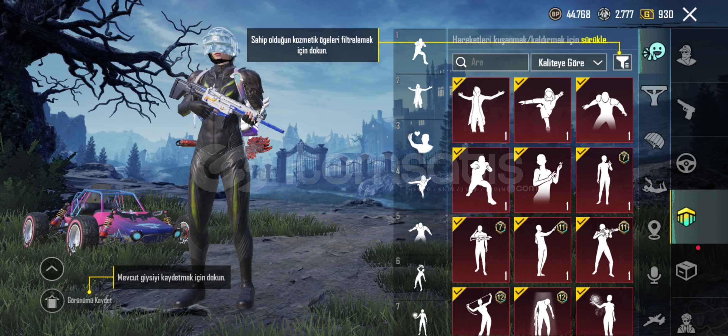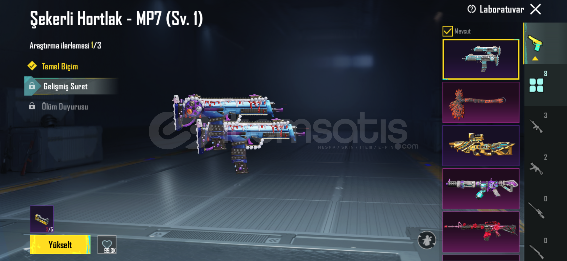Hesapda royale pass açıktır 70. Seviyededir 22 tane destansı vardır suikastçı seti seri katil seti buz seti ve işgalci seti bulunur 8 yükseltilebilir vardır 6-7si fulldur çoğu silahda skin vardır tel alt mail değişir az olsada pazarlık payı vardır daha fazla bilgi için dm