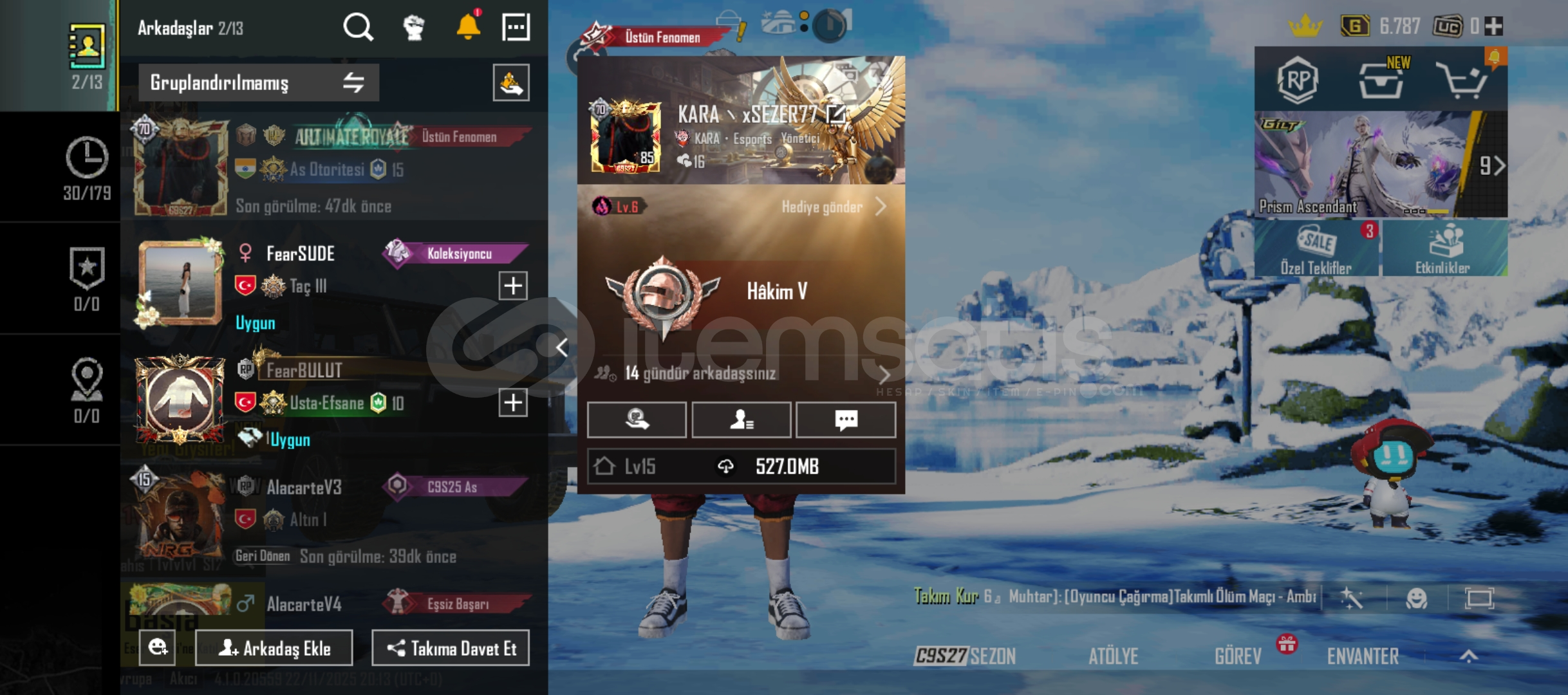 Hesapta Kara Sezer Ekli(Üstün Fenomen)Hesapta 4 Yükseltilebilir Var 1 Ölüm Duyurusu Scar-LHesapta 17-17 Destansı Var Hesapta 1 Modifikasyon 66 tane Premium Sandık VarBütçe Dostu Bir Hesap Para Lazım Diye Satıyorum