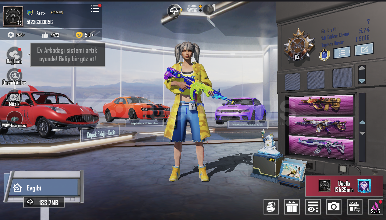 Hesap ID: 512-363-03-856⚔ YÜKSELTİLEBİLİR SİLAHLAR⭐ Max Seviye • Kertenkirek Kükremesi M416 – Max • Ejder Katili Yadigâr Pala – Max • Çığlıklar Sirki Arbalet – Max • Şirin Kedi Kar98 – Max • Gece Gladyatörü PP19 Bizon – Max • Ruhani Muhafız Uzi – Max • Tundra Şövalyesi Sanceri – Max • Dikenli Şafak M16A4 &ndash...
