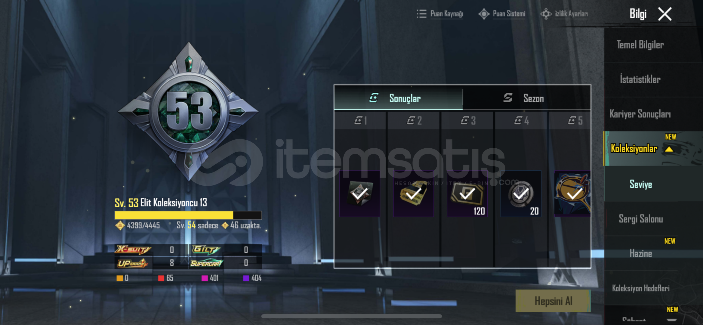 53 Koleksiyon Seviyesi Var (54 E Çok Az Var)