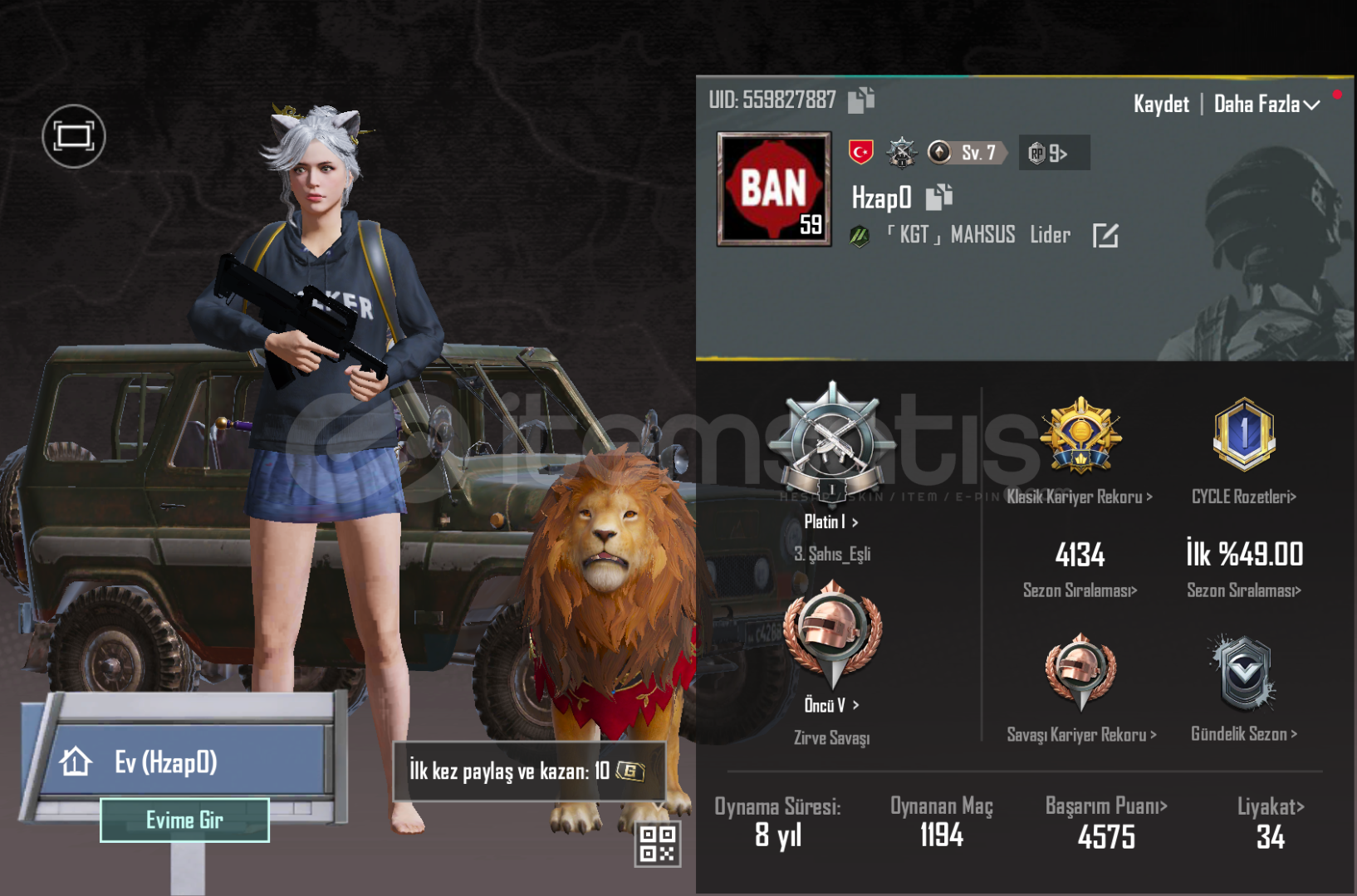 icinde Walker üstü var 2.sezon hesabı 59 seviye 3 tane yükseltilebilir silah var 3 seviye thamson var yeni başlayanlara göre hesap ve kombinlik hesap isim değiştirme kartı mevcut pazarlık yapılırNADİR ETEK VAR
