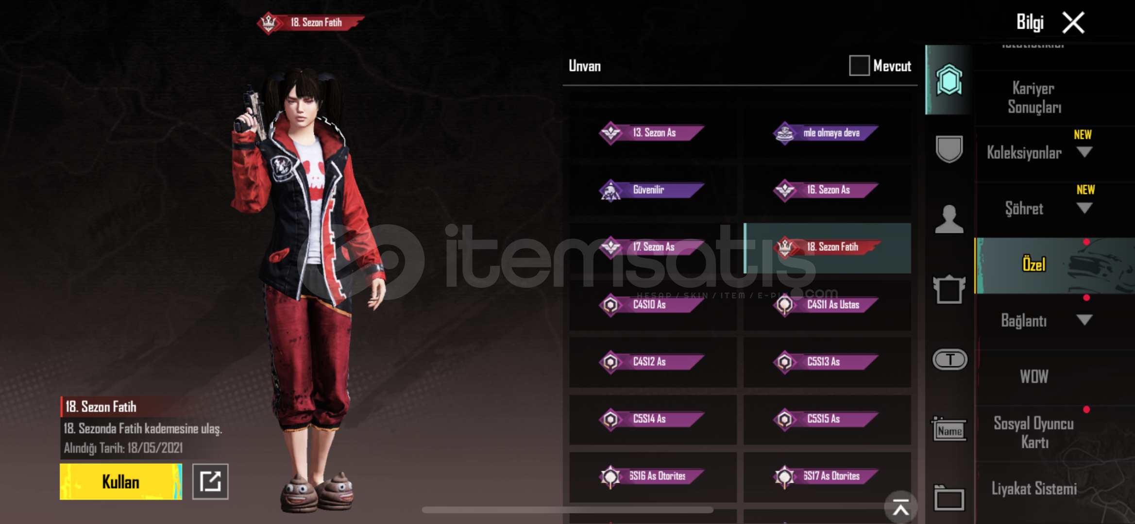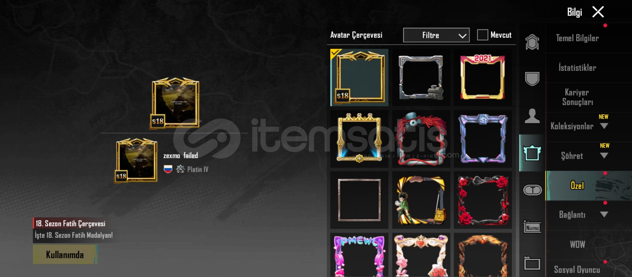 Id :5302211373⚪️S18 FATİH⚪️JANTİ SET78 Seviye⚪️52 Kolleksiyon seviyesi⚪️42 Destansı Öge ⚪️10 yükseltilebilir silah 2 ölüm mesajı⚪️Mavi forma full⚪️Siyah forma ⚪️Emoji delisi ayakkabısı⚪️seytani yarısçı üstü⚪️Mor sporcu üstü⚪️