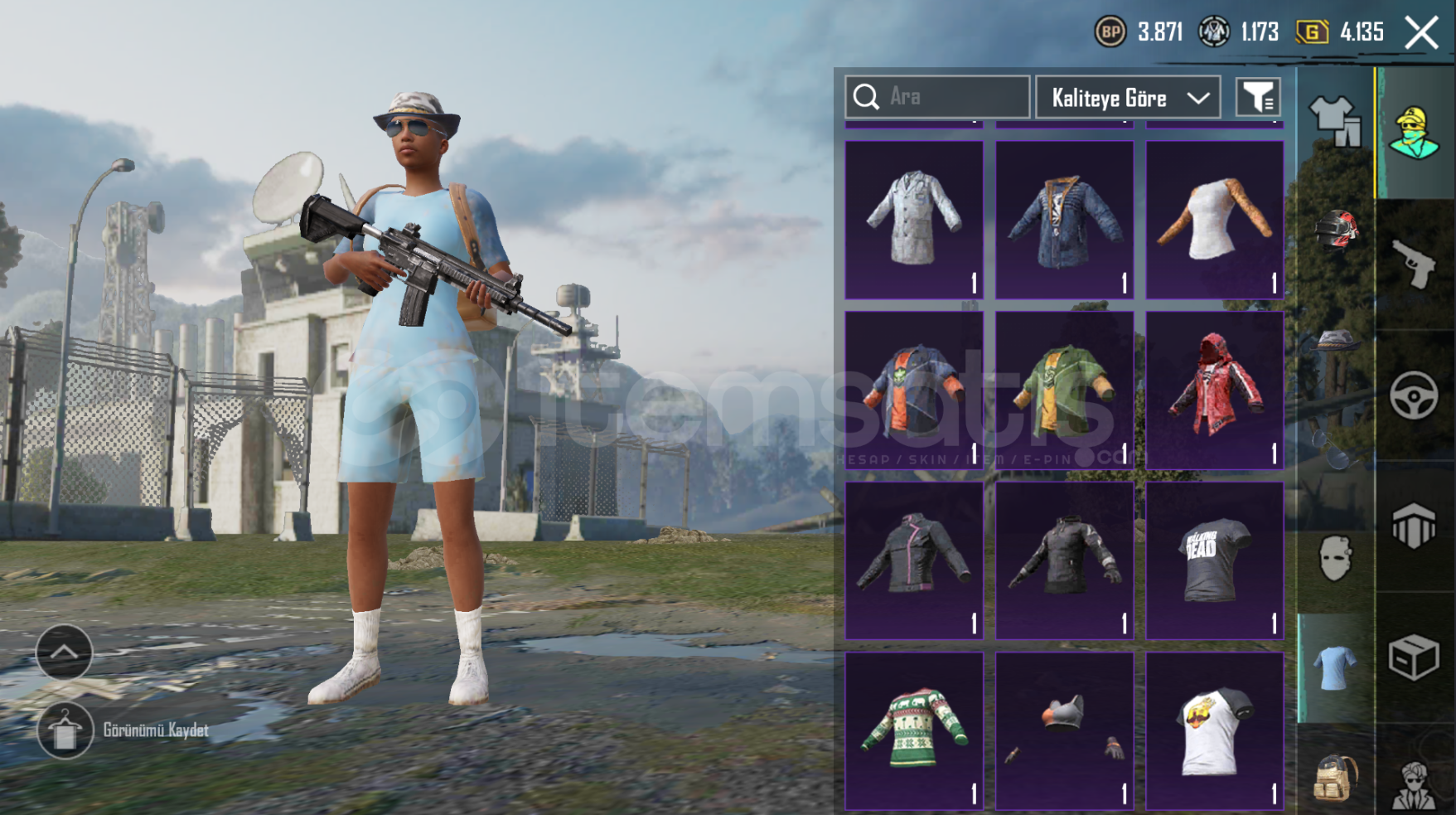 Mavi Üst Alt Kombin Walking Dead ÜstGodzilla ŞapkaJanti ÇantaKelebek Kanatları ÇantaVe Bir Çok Nadir Kombin