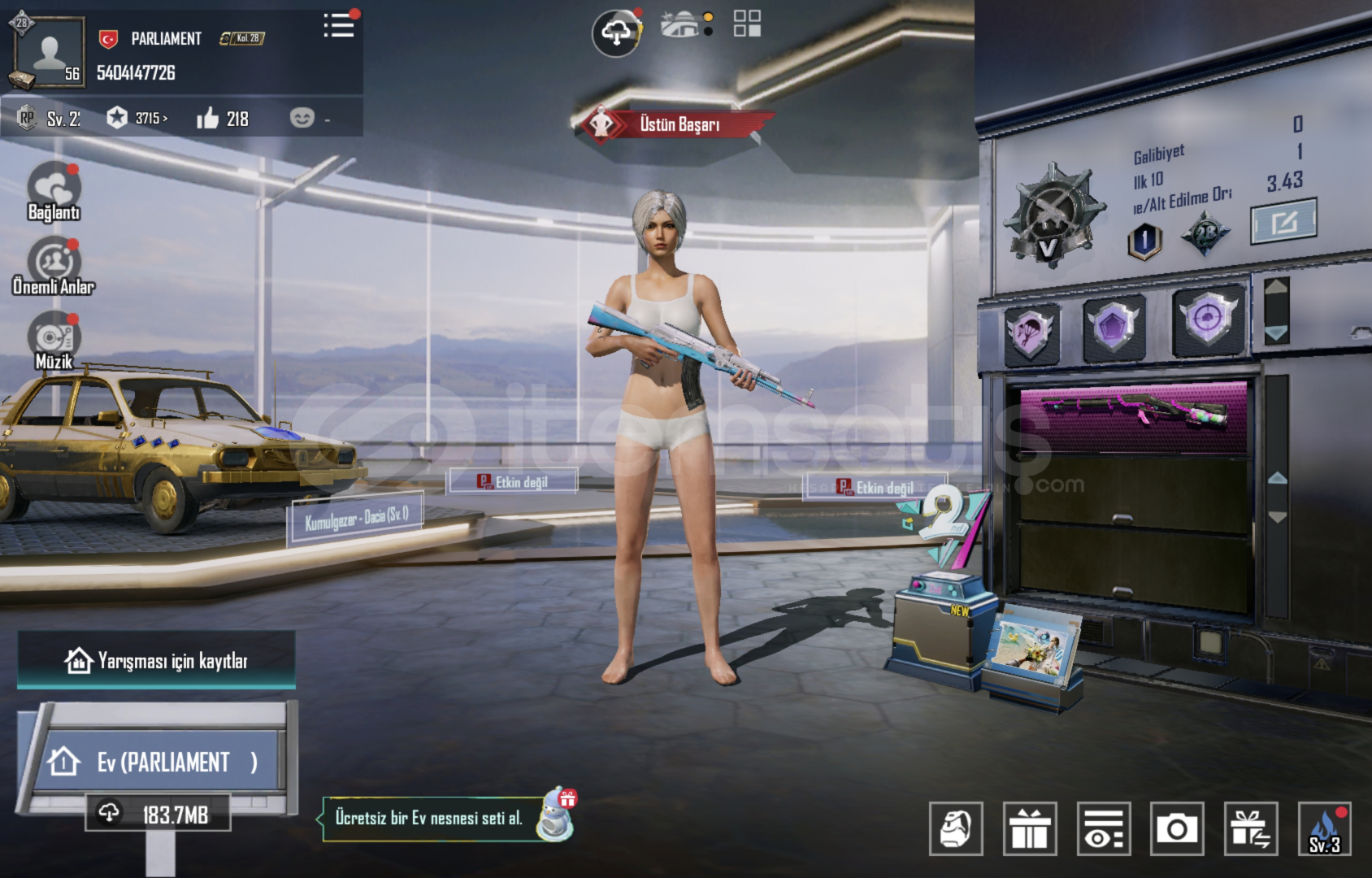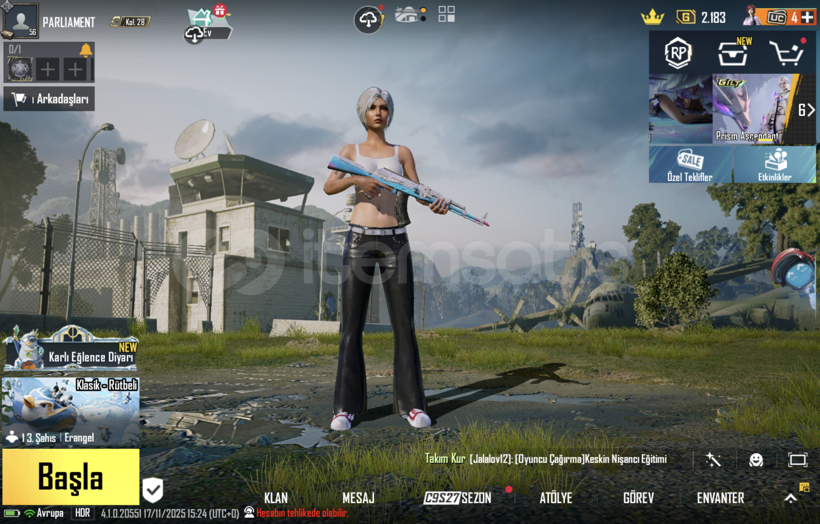•Merhabalar Öncelikle mağazamıza hosgeldiniz. Hesapile ilgili;•hesapta 6 destansı mevcuttur. •önceki rpler açılmıştır. •nadirlik vardır.•çokca silah desenı ve kombinlik eşya mevcuttur. Özel bir sorunuz varsa Dmden mesaj olarak iletmeniz yeterlidir.!Güvenilir Dijital Mağaza – PUBG UC & Oyun İçİ ÖgelerMağazamızda tüm UC ve dijital oyun...
