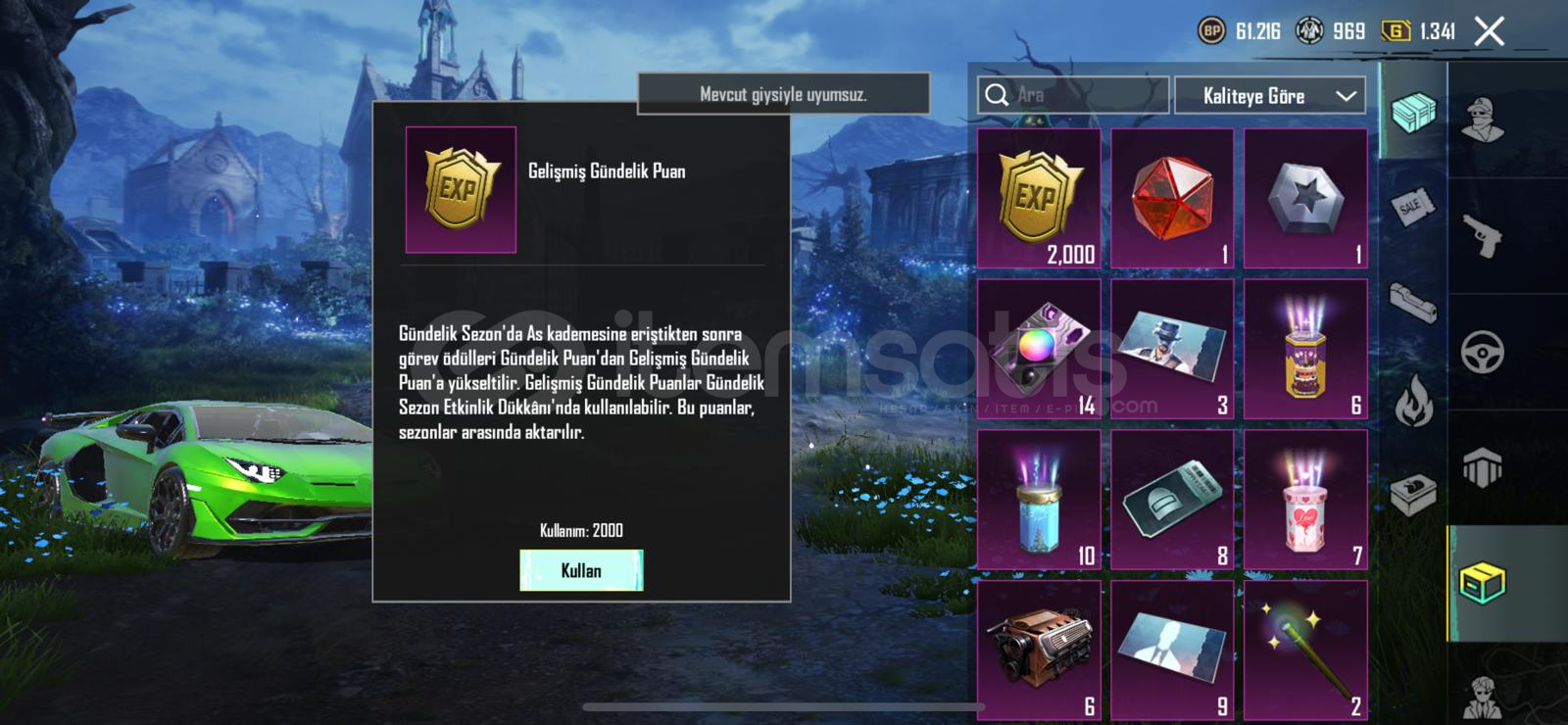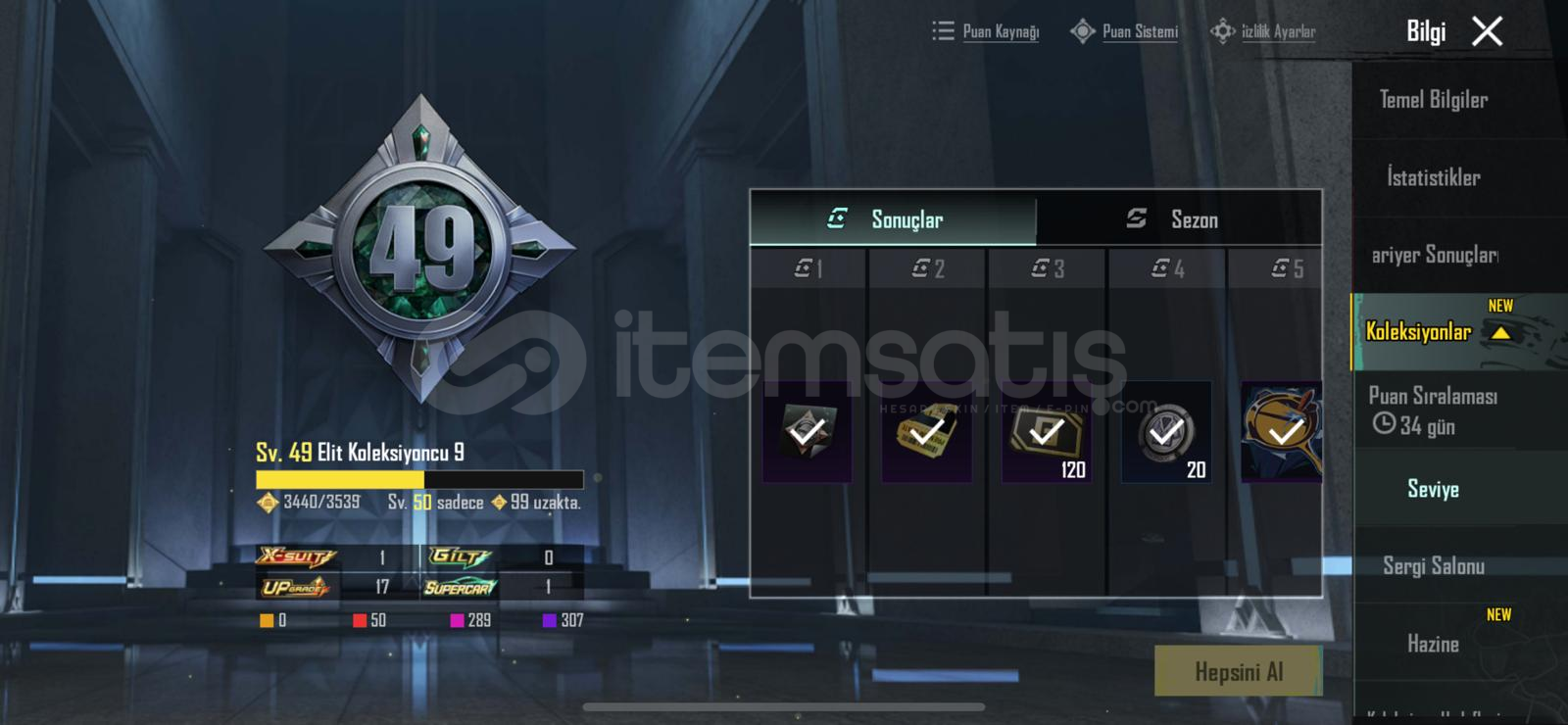 Merhaba Hesap 48 Destansı 17 Tane Yükseltmeli Silah Vardır Hesapta 2 Tane Destansı Lobi Vardır+ Hesapta Dravion X-Suite vardır (1 Seviye)+ Köpek Yoldaş Vardır Hesabın Rp Si Açık 97 Dir Hesapta Ekstra 480 UC Vardır Hesapta Yeşil Lamborgihini Aventador Vardır Hesabın Bağları E-posta+Facebook Bütün Bağlar Size Devredilecektir Hesap Temizdir Bi Sıkıntı Yaşamazsınız...
