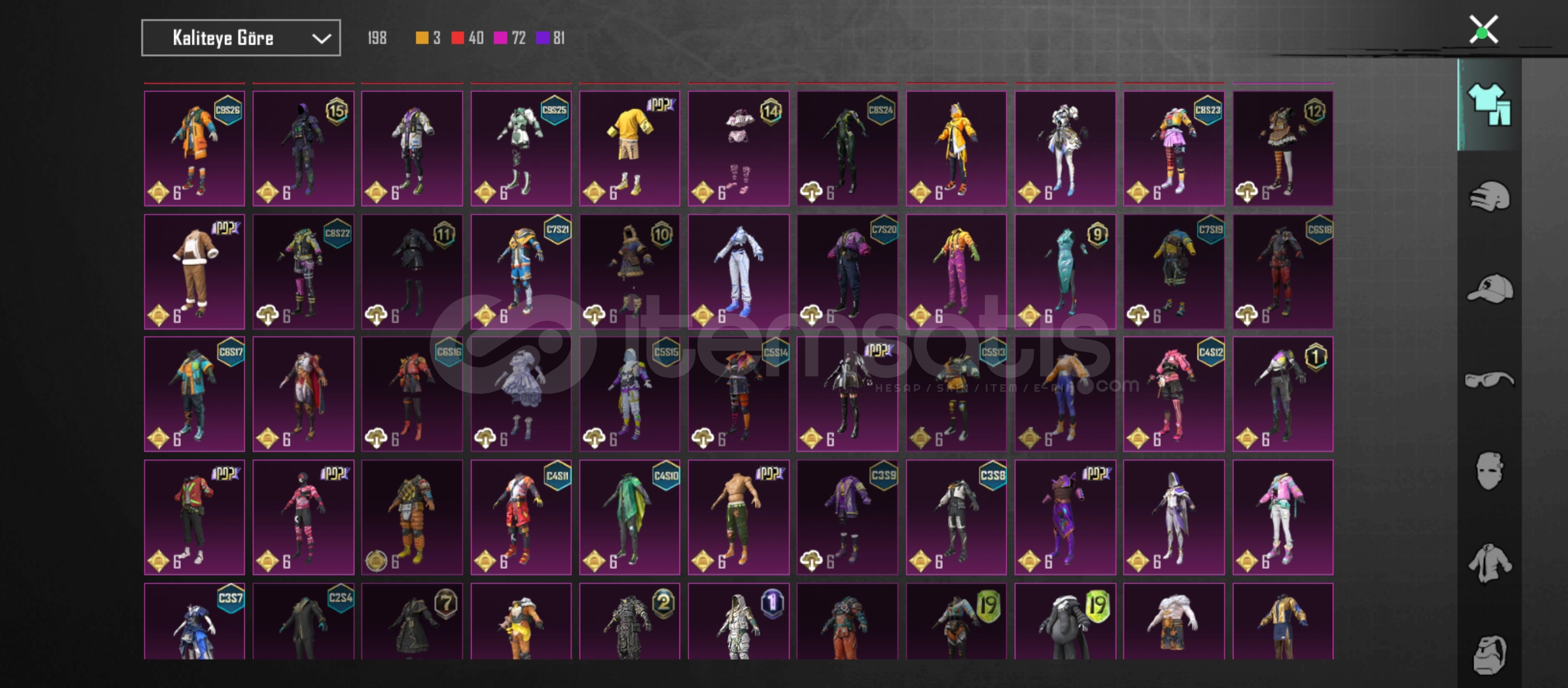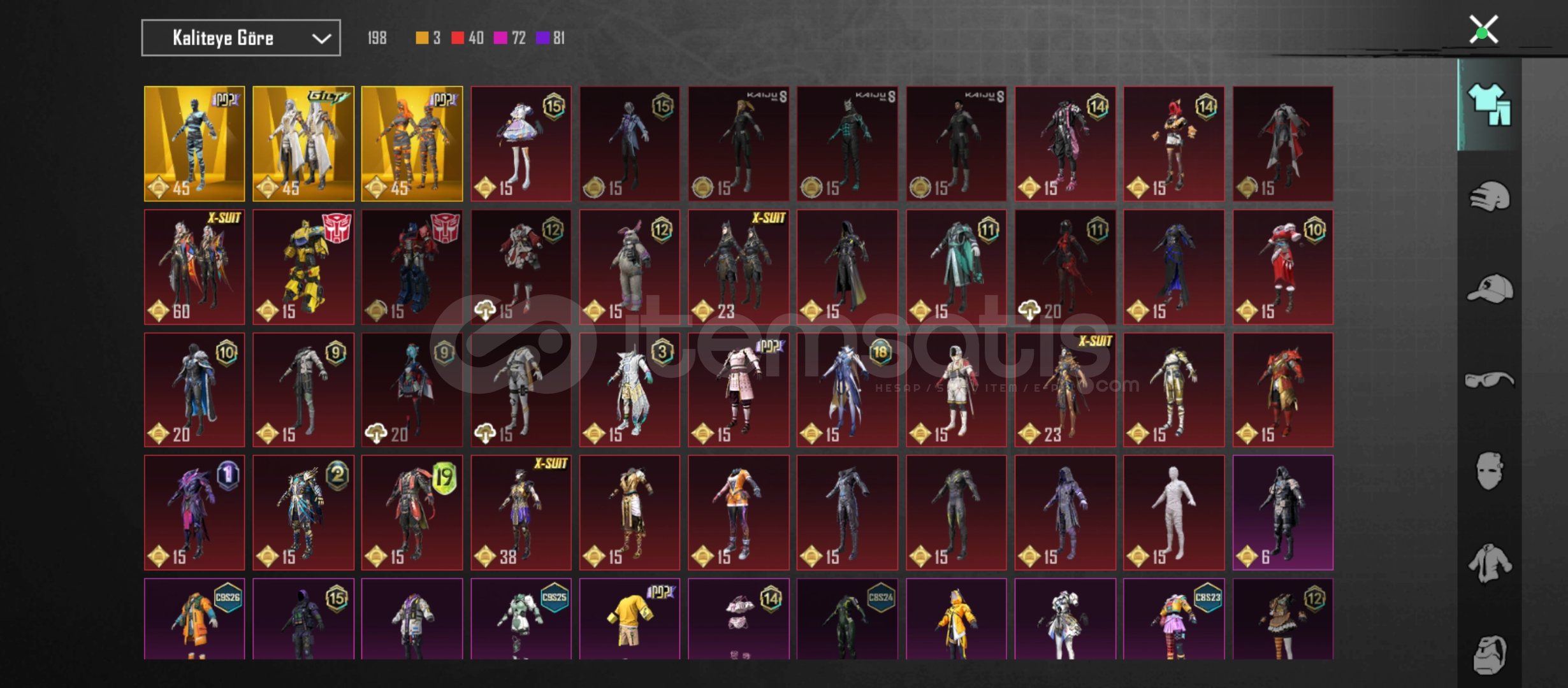 3 adet nihai set3 tane mumya (buz,alevli,beyaz)Lüks LOTUS araç(Sarı)Bütün maskara seti (silahı yok)4 TANE x suit (yükseltilmiş) FİRAVUN ÇANTASIHEPSİNİ SAYAMAM REİS BİR SÜRÜ SET VARNADİR UST ALTPARAŞÜTLER DOP DOLU2 DESTANSI PLANÖRUAZ,SEDAN,BUGGY,MOTOR,ÜÇLÜ MASKARA MOTORU...Ve daha bir çok şey(VİDEOSU VAR YOUTUBE'DA)M416: BUZ DİYARI SON SEVİYEM416: YER...