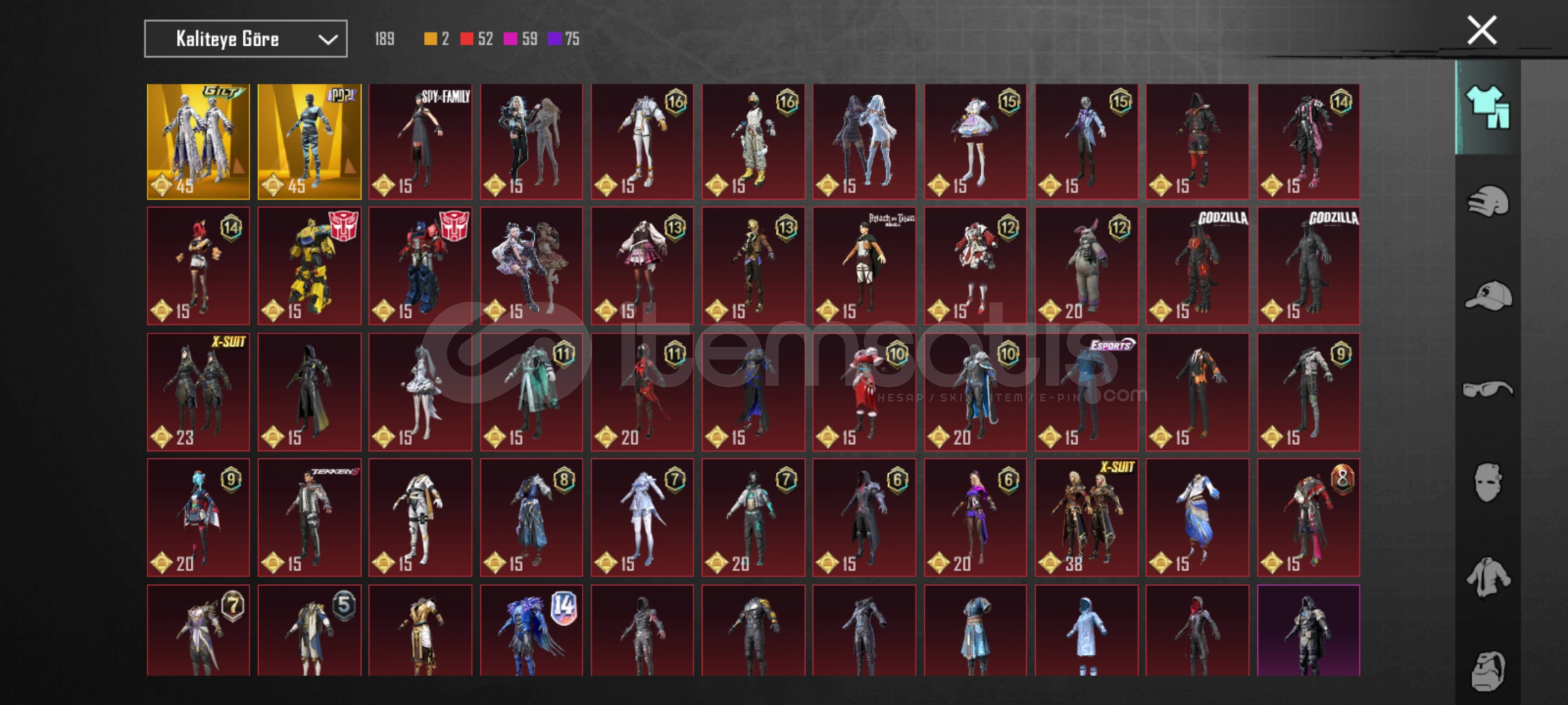 Sayamadığım fazla nadir kıyafet ve skin