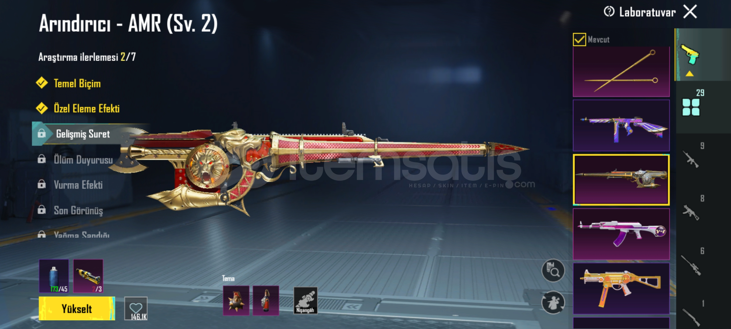 Diğer gelişebilir silahlar + efektler fazlasıyla mevcut(28 yükseltilebilir)
