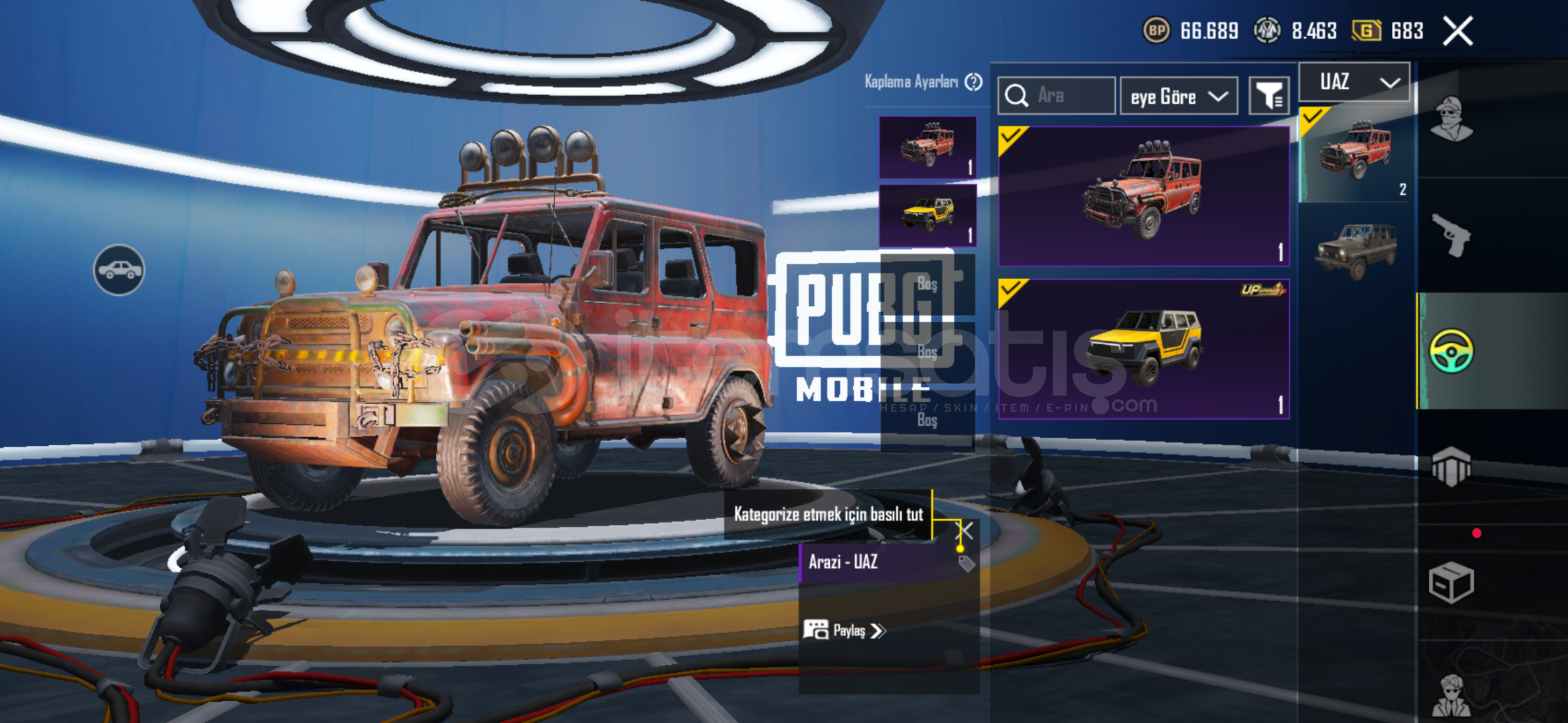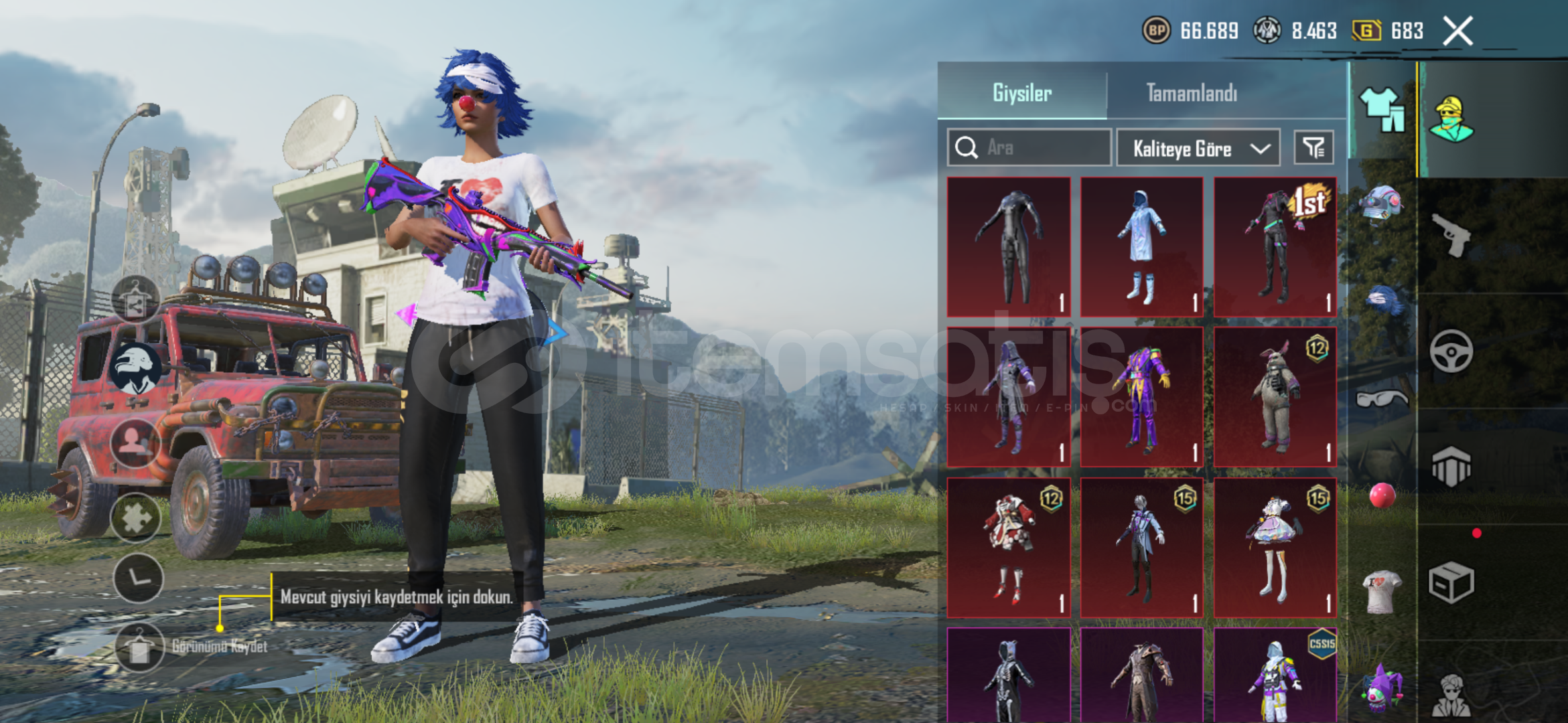 Satılık PUBG Mobile hesabı; koleksiyonluk nadir eşyaları, yükseltilebilir silahları ve tam setleriyle üst düzey bir vitrindir. Tüm içerikler eksiksiz ve sorunsuzdur.