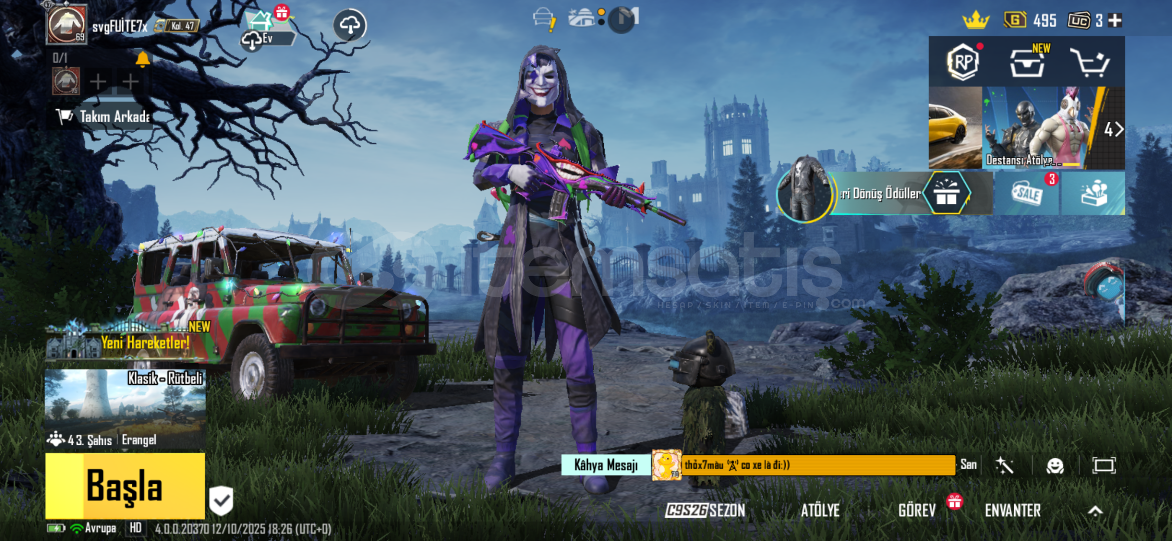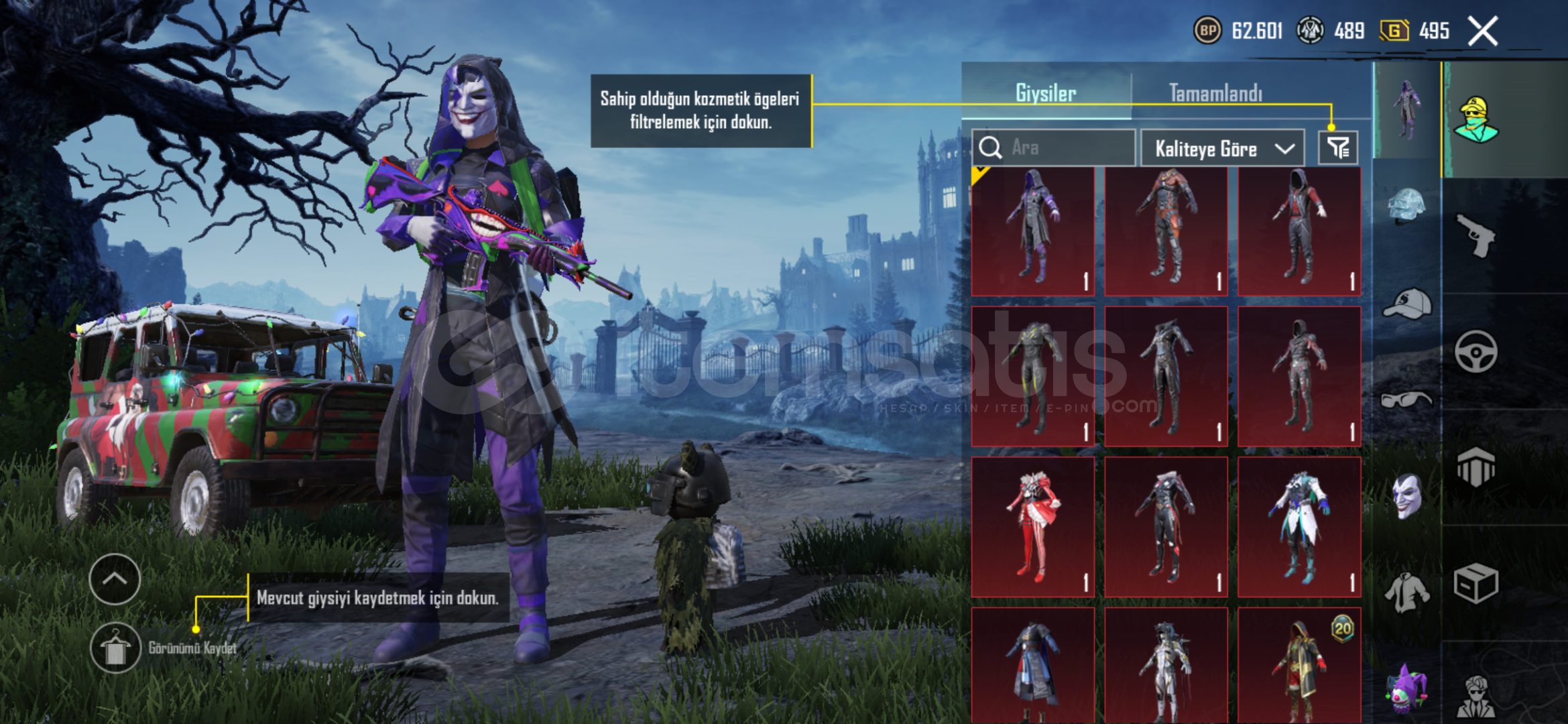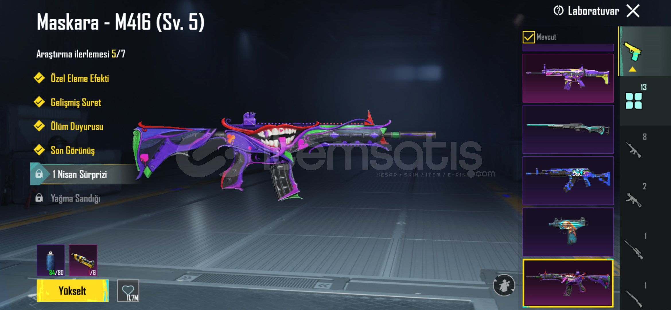 Maskara ile alakalı hersey Full13 yükseltilir silah1 Zırh XBirçok destansı set3 öldürme mesajlı 1 3 seviye envanterde birçok sey oda kartları vs materyel Acil satılık bağları cok temiz ilk kullanıcısından