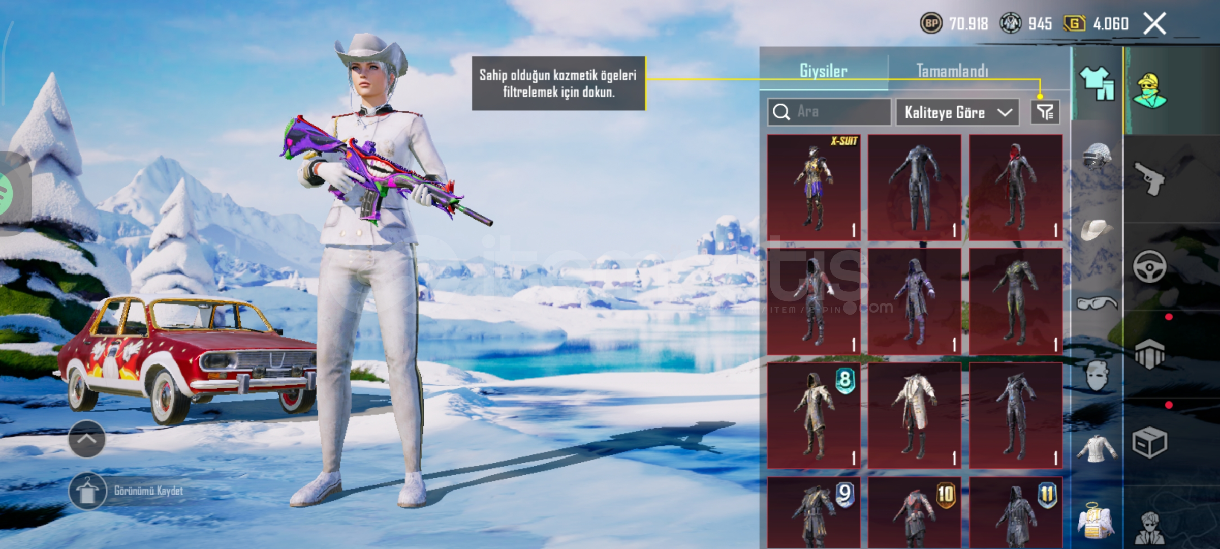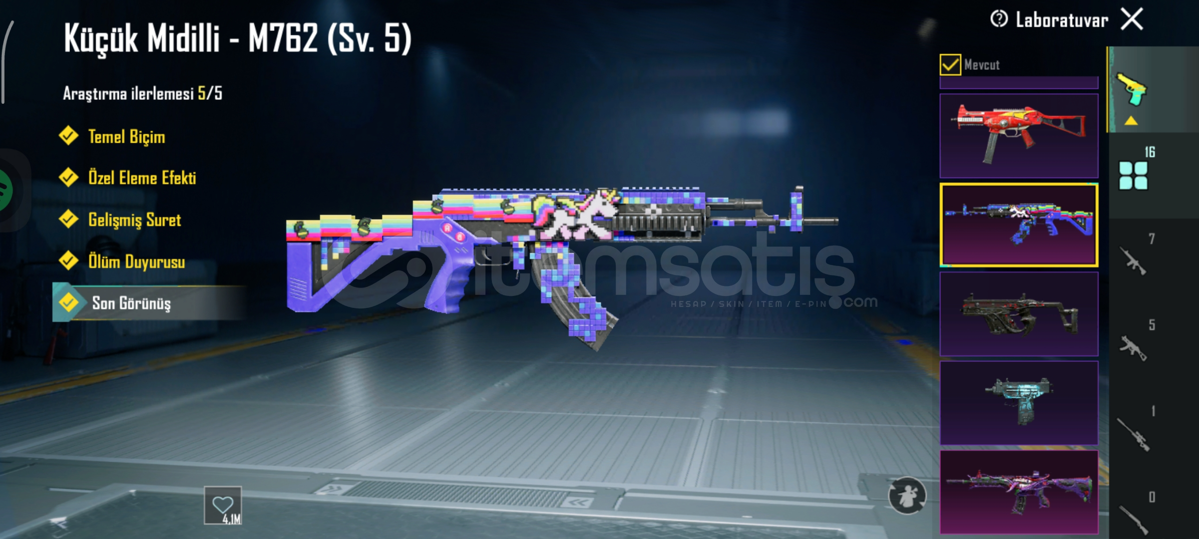 Yükseltilebilir Silahlar:-Maskara M416 5.Seviye-Yakan Kükreme M416 6.Seviye-Küçük Midilli M762 Max-Tundra Şövalyesi Hançeri Max-EMP UMP45 4.Seviye-Kanlı Diş VECTOR 4.Seviye-Göksel İşaret UZİ 2.Seviyeve daha 10+ Yükseltilebilir Silah daha vardırDETAYLAR:61 DESTANSI + 4 DESTANSI AMBLEMFİRAVUN X-SUİTİŞGALCİ SETİKÖPEK BALIĞI SETİDİSTOPYA SETİMASKARA FULL SETDEN&#...