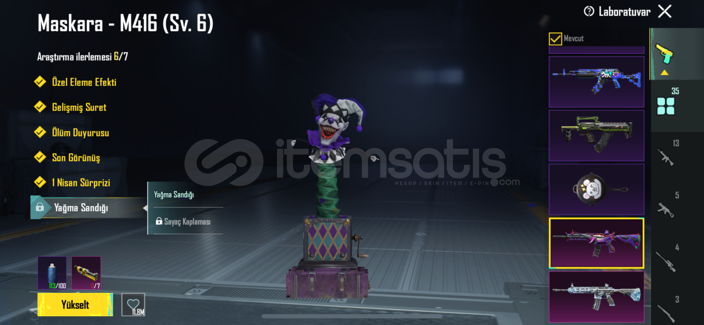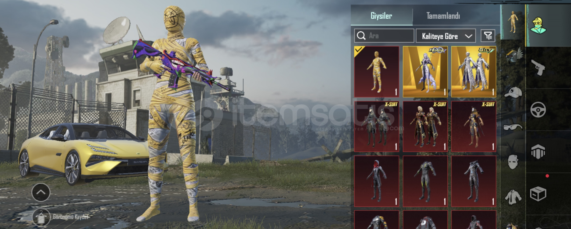 MASKARA M416 6 SVYAKAN KÜKREME M416 6 SVBUZ M416 1 SVKÜÇÜK MİDİLLİ M762 4 SVÖLDÜREN NAĞMELER M24 4 SV VE BİR ÇOK SİLAH3 X SUİT 1 TANESİ 2 SV2 NİHAİ SETLOTUS SPOR ARAÇ8 ÖZEL SET ÖZEL EMOJİLİ SARI MUMYA DAHİLDESTANSI KASK VE ÇANTALARBAĞLAR E POSTA TEL DEĞİŞİM AÇIK