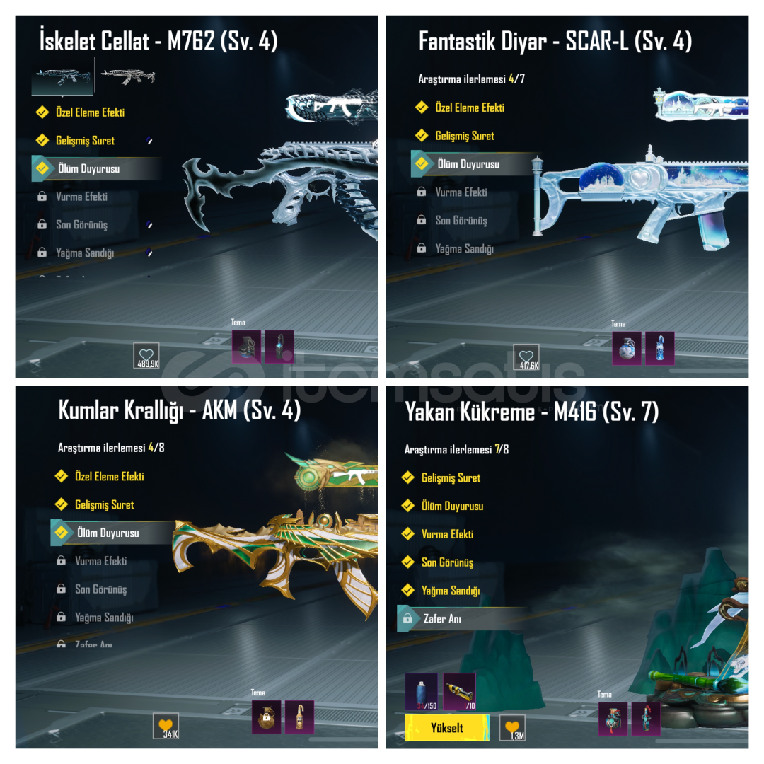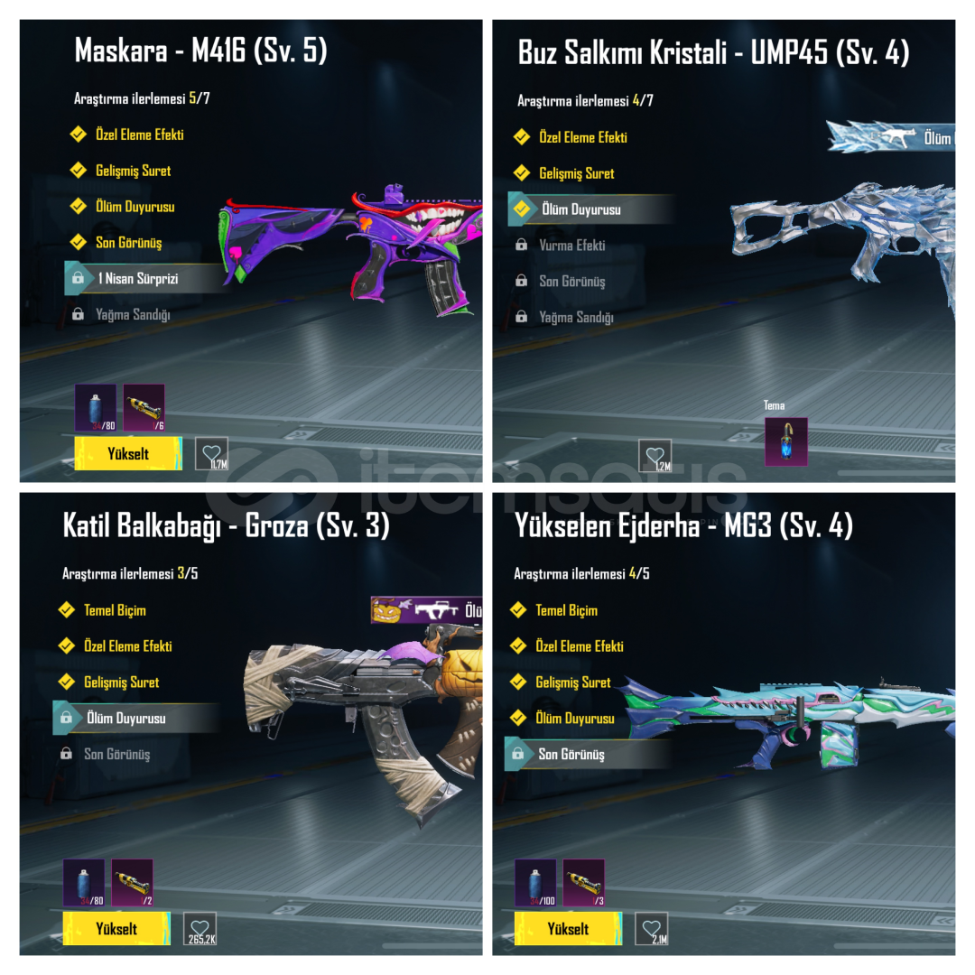 buz ump scar ak m7 maskara m4 yakan kükreme mg vs 26 adet yükseltilebilir silah 10 mesajlı 1 adet yıldonumu umpde bulunur