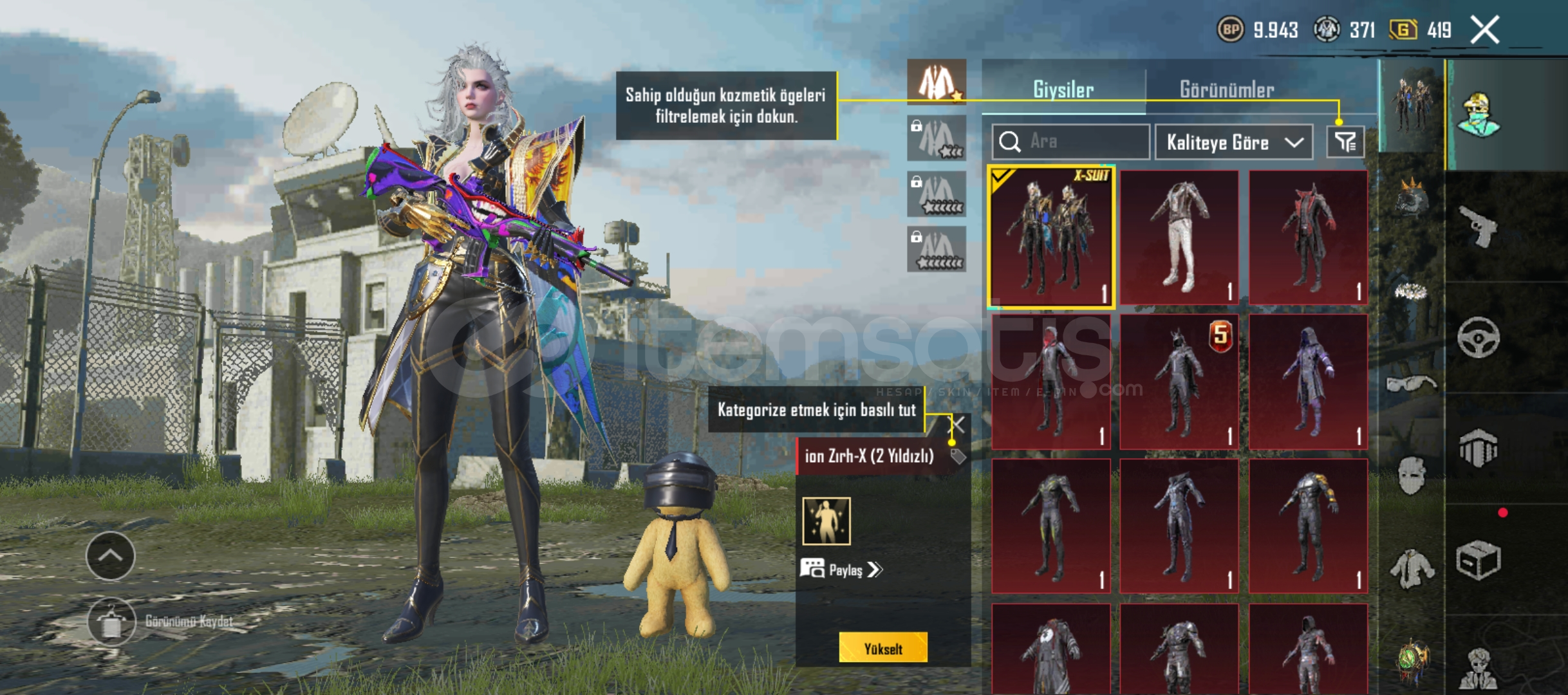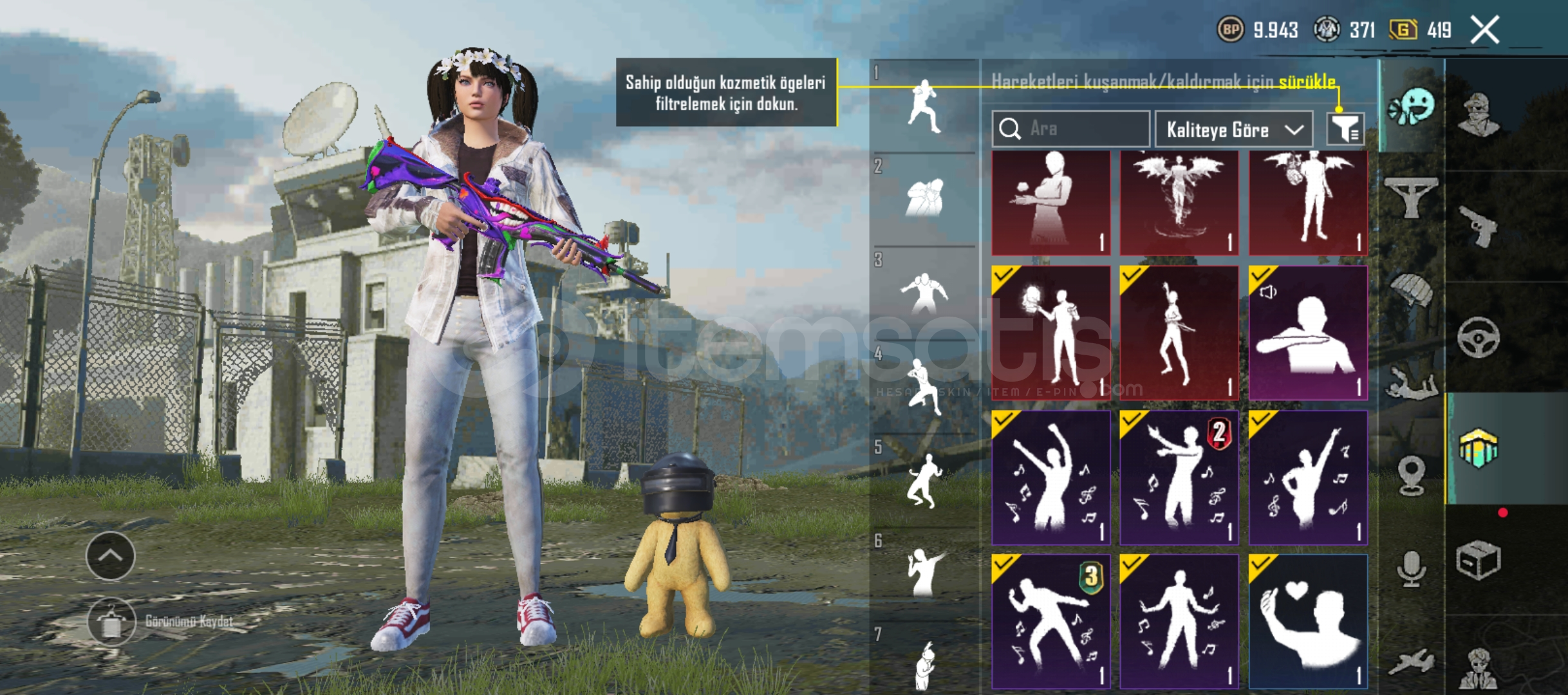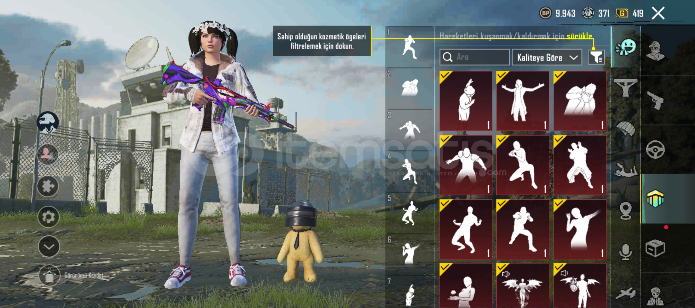 MASKARA FULL + 5 TAM 7 YARIM MATERYALS4+S5 SAÇ VE YÜZ19 ADET SİLAH12 ÖZEL EMOJİXSUİT 2 SEVİYWDİKENLİ KASKKOMUTAN FULLSEHİR MUHAFIZI CEKETİKOYU ALTIN KOMBİNİ FULLANANAS KOMBİNİ FULLVE DAHA FAZLA KOMBİN MEVCUT ALANA HAYIRLI OLSUN