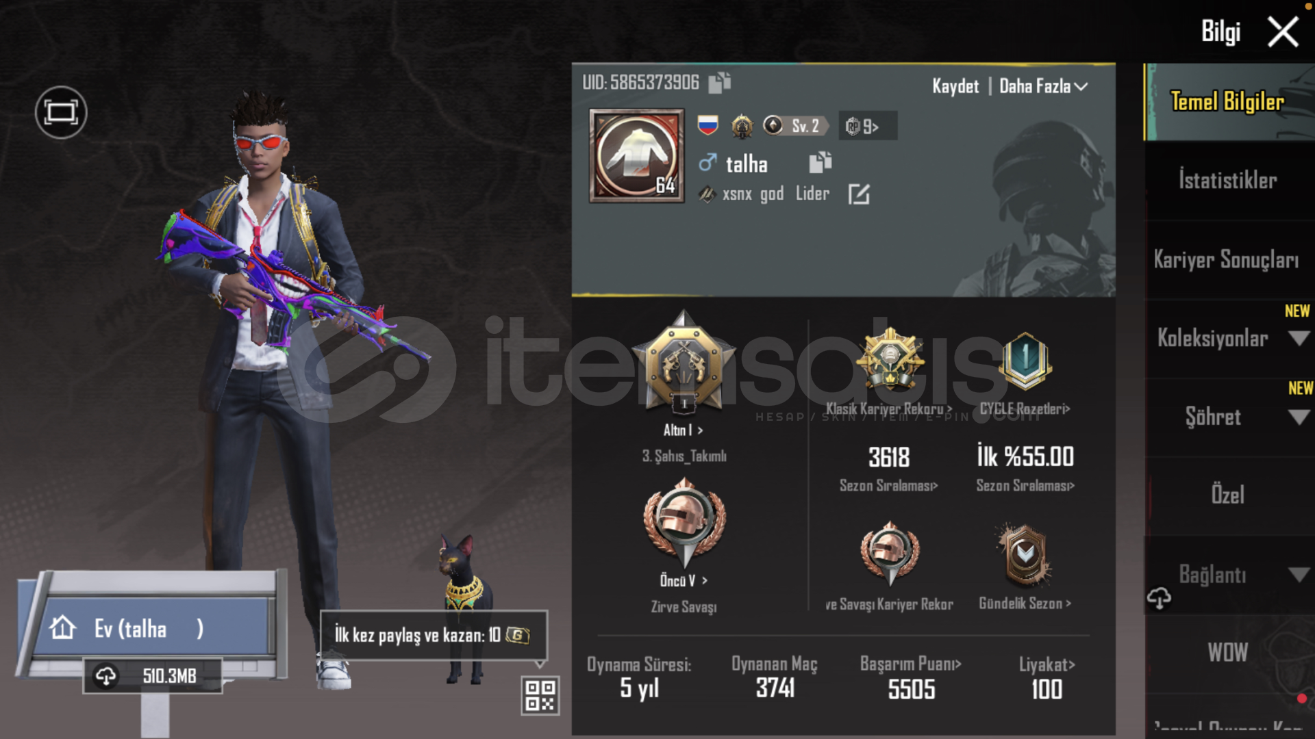 Dünyanın evrenin en güvenilir adamı pubg hesabımı anında verdi