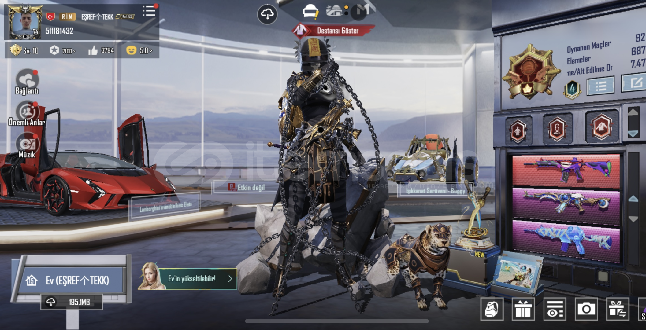 Kaçmaz Hesap 90 Destansı 63 Koleksiyon SeviyesiSedan Kırmızı LamboMASKARA FULLKomutan FullS5 Saç 3 X SuitAnukra 2 lvlGaladria 2 lvlFiore 2 lvl37 silah 14 öldürme MesajlıMaskara M416 MAXYıl Dönümü Ump Kendiliğinden MAXGümüş Guru M416 6 SvyMaskara Scarl 5 SvyKutsal Ay AKM 5 SvyVahşet UZİ 4 SvyKanlı Diş Vector 4 SvyOrman Baskını GROZA 4 SvyBukalemun Bizon 4 Svy&...
