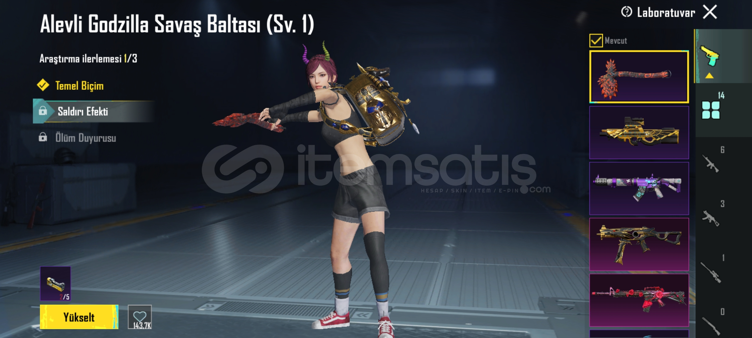 Maskara m4 4 seviye anukra UMP 2 seviye anukra zırh x 2 seviye yanar döner zırh x var ve daha çok şey almayan pişman 2 tane materyal 3 destansı amblem bulunmakta daha koyamadıgım yazamadıgım çok şey var