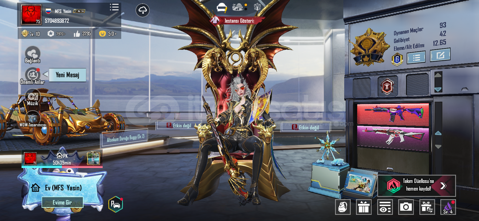 TOPLAM 63 DESTANSI VAR KOMUTAN KOMBİN FUL CREW CEKETİ VARANANAS KOMBİNİ FUL DRAVİON XSUİT 2 SEVİYE SAHA KOMUTAN SETİ VAR GALAKTİK SETİ VAR MASKELİ MEDYUM KASKI VARYILDIZ KANAT HONOR ÇANTASI VAR23 YÜKSELTİLEBİLİR SİLAH VAR MASKARA M4 MAX DRAVİON AWM 4 SEVİYE BUZ DİYARI 1 SEVİYE KARAR GÜNÜ AKM 3 SEVİYE VAHŞET UZI 4 SEVİYE YARIN OPERASYONU SCAR L 1 SEVİYE KATİ...