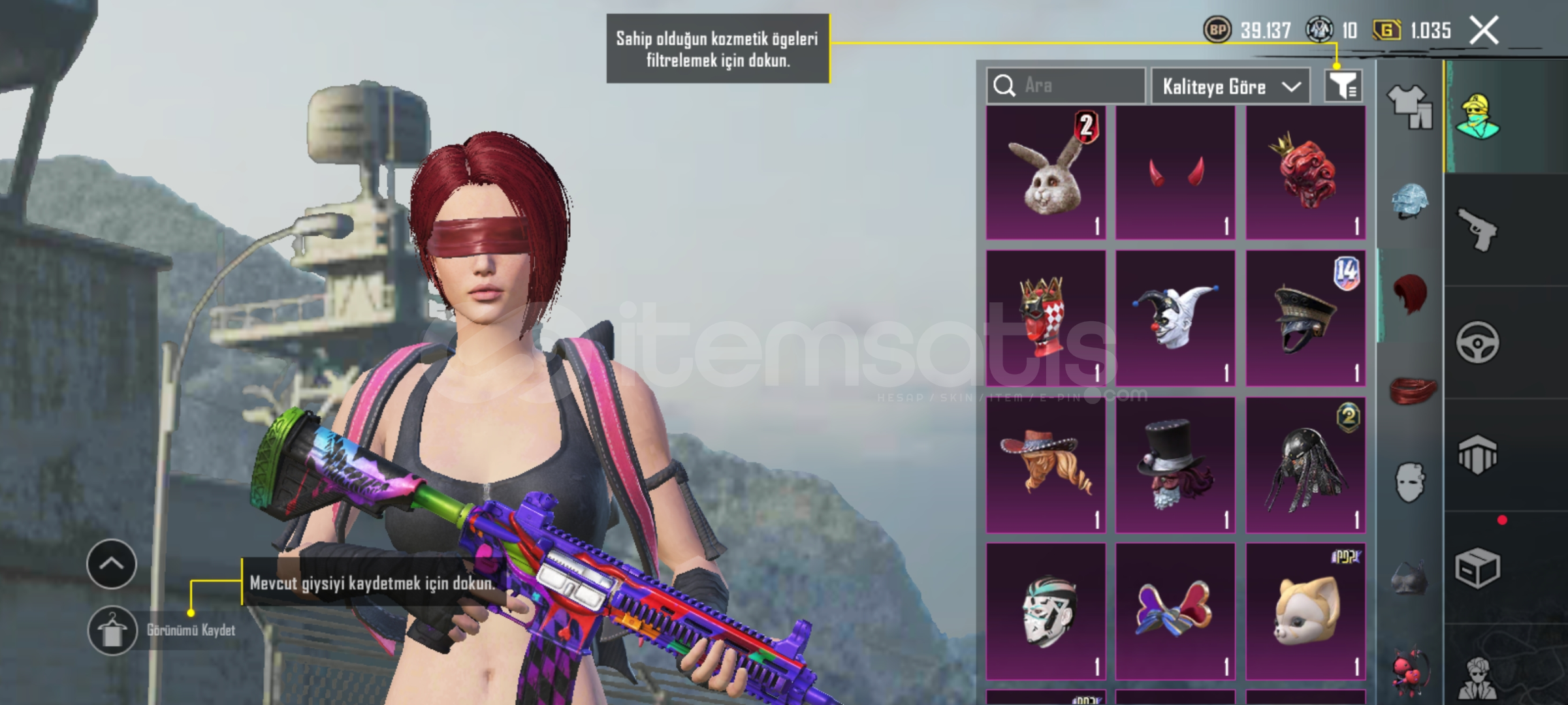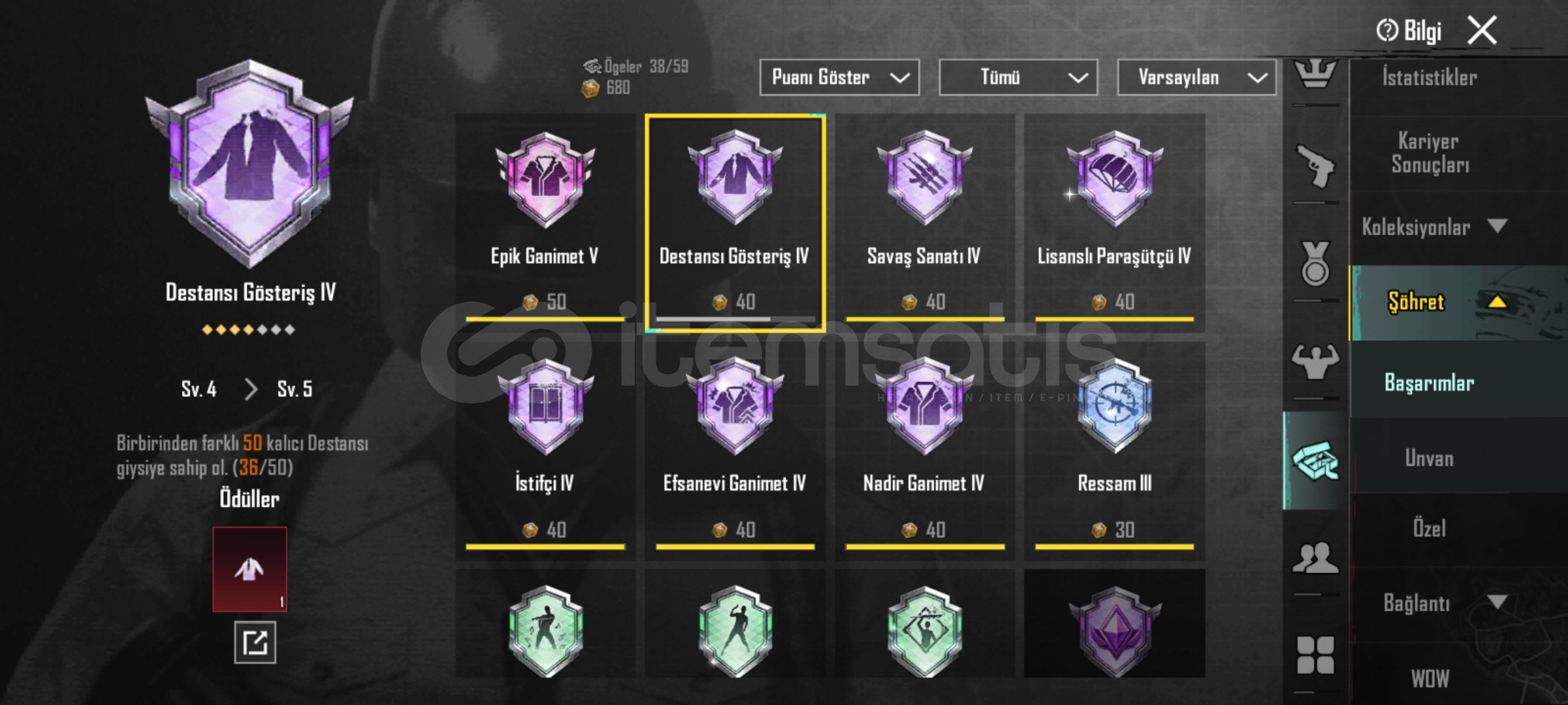 Hesapta 4 seviye maskara 2 seviye buz diyarı full seviye ump 2 seviye uzi full seviye pala full seviye kar98 S4 yüz 36 destansı şuan as kademesinde pass açık ( ölü fiyat vermeyin!!!)