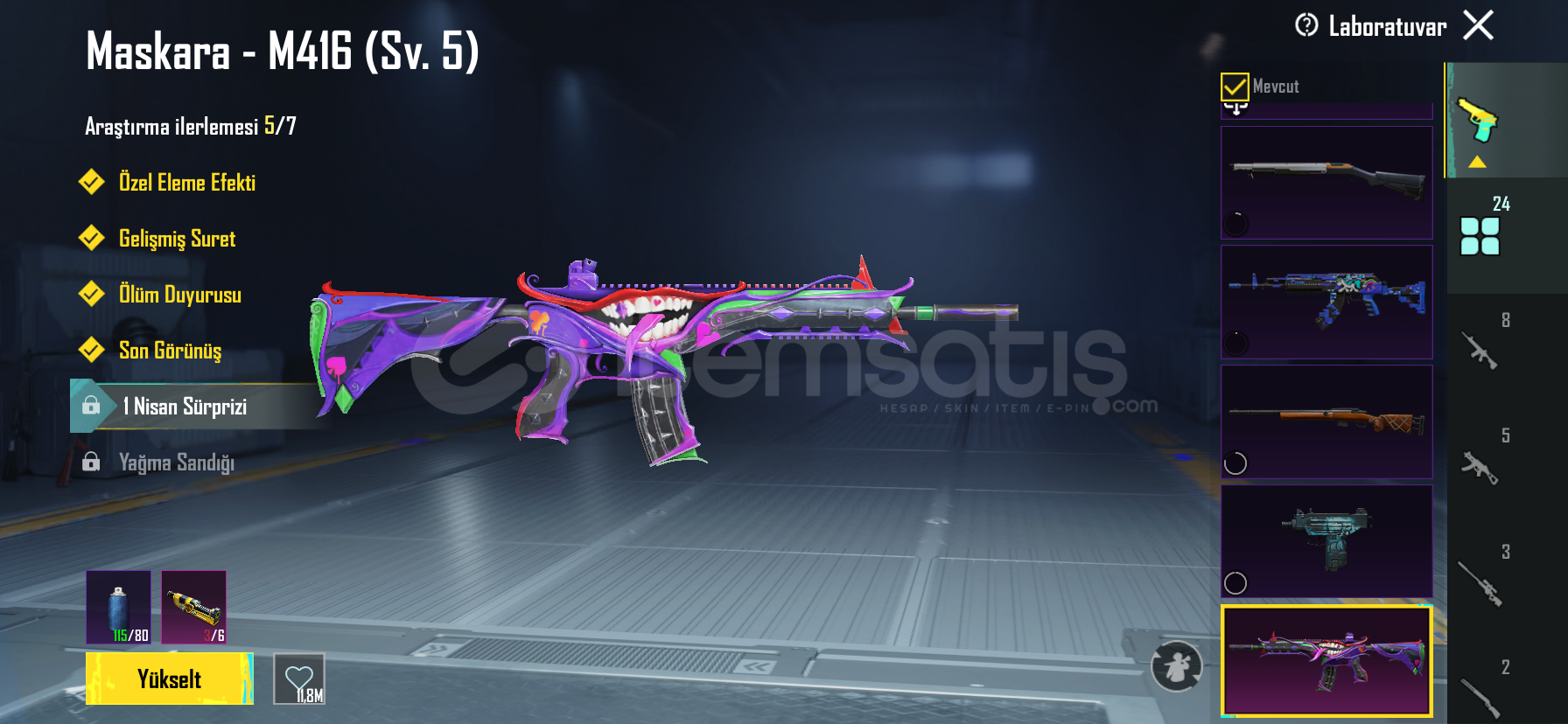 Maskara 5 level maskara seti buz seti ve daha bir sürü set kask firavun çanta yıl dönümü mirası 25 E yakın yükseltiler silah bu fiyata bu hesap