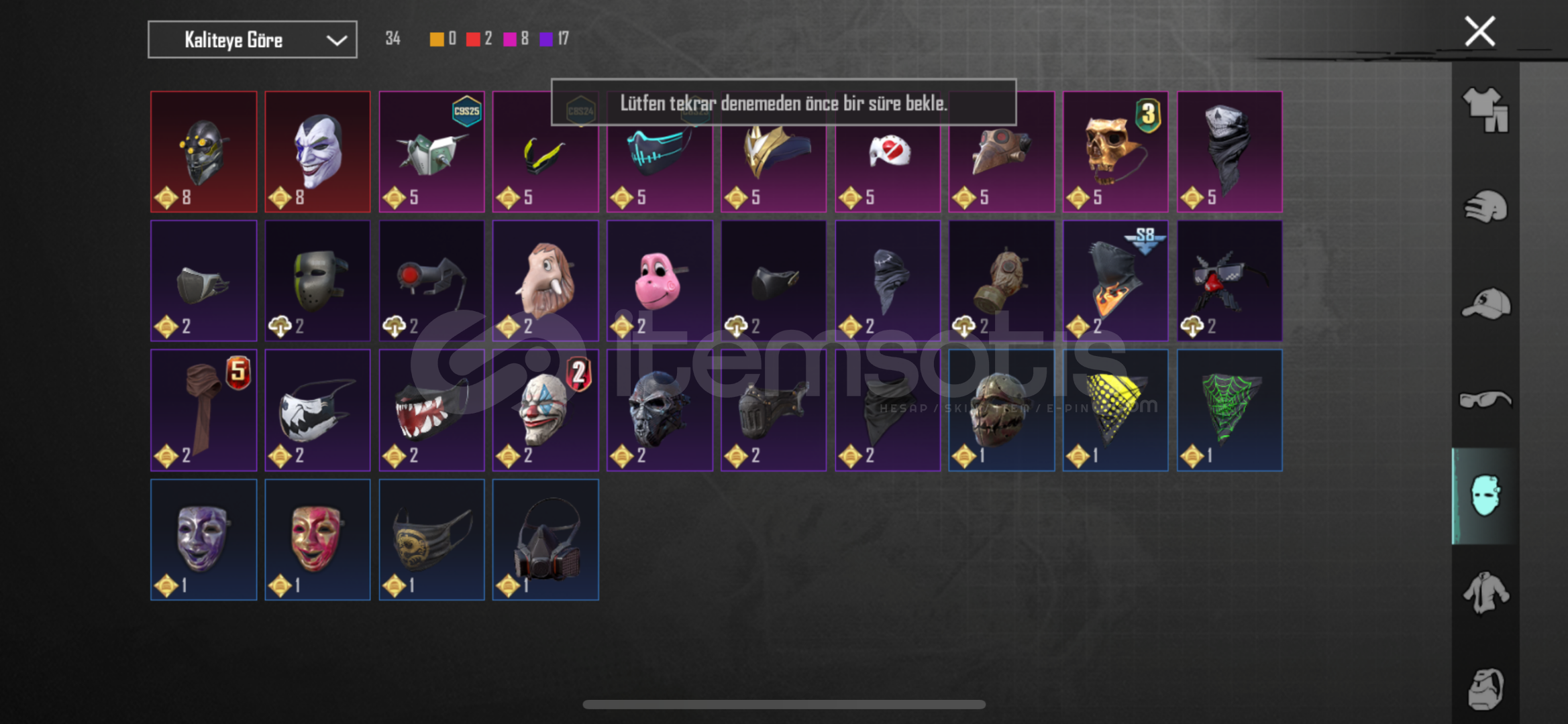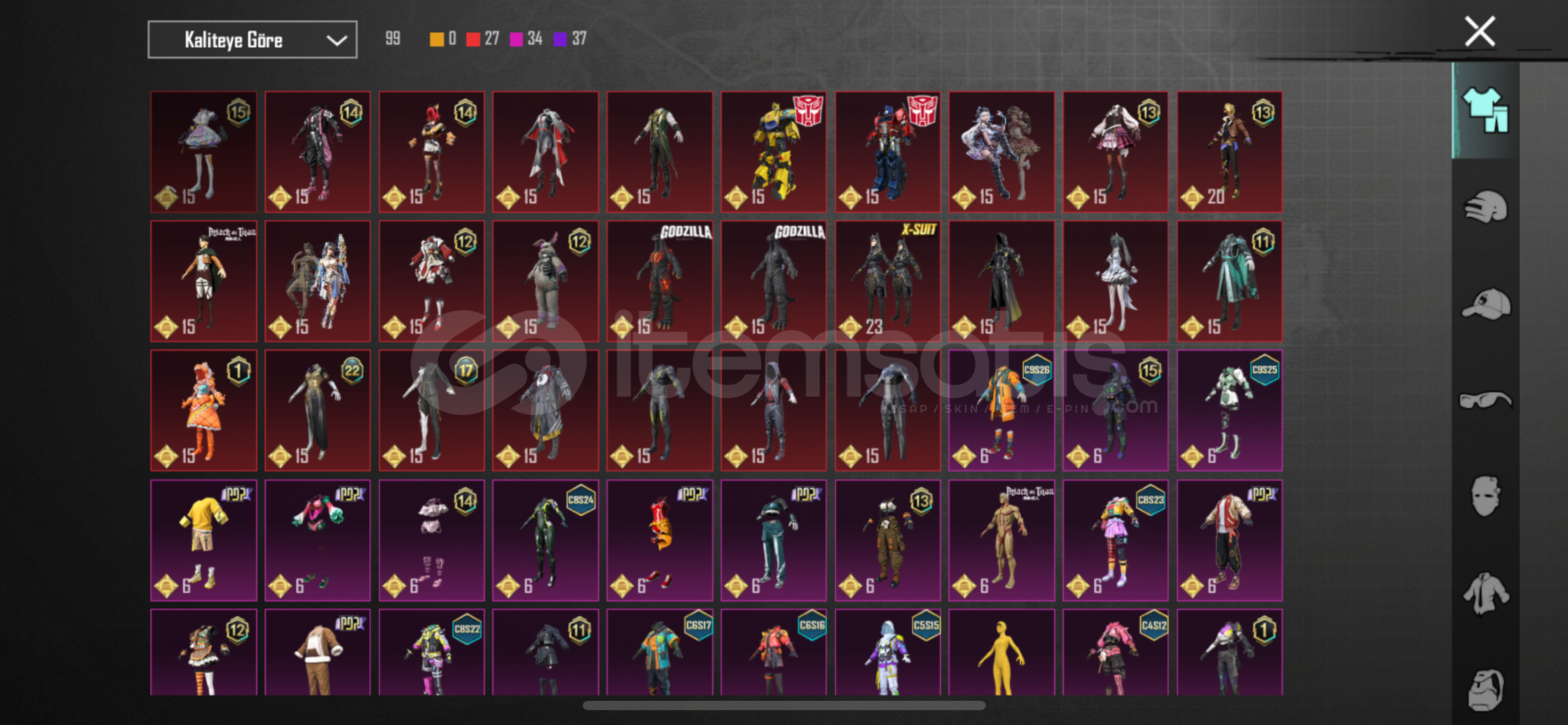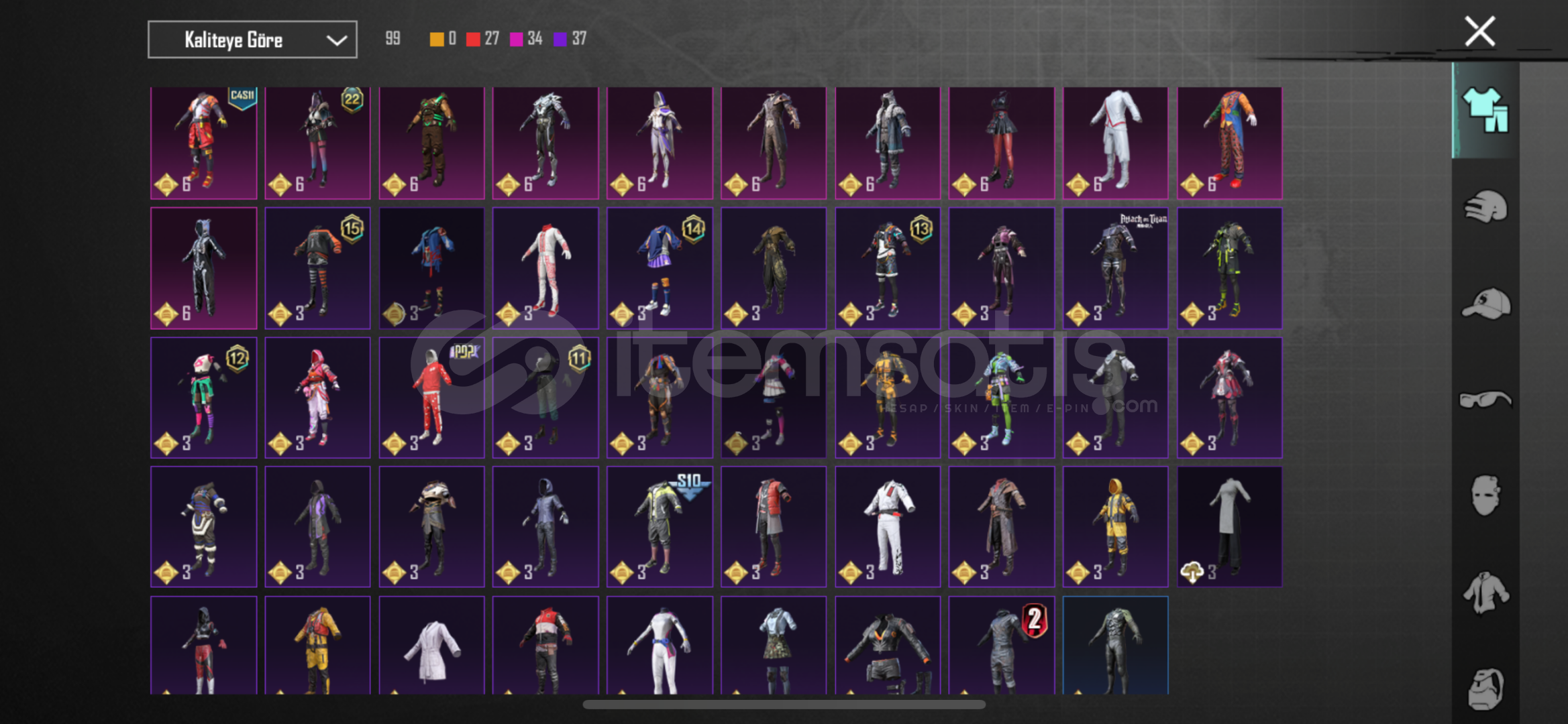 hesap çok doludur 25 tane yükseltilebilir birsürü set vardır fotolardan bakabilirsiniz