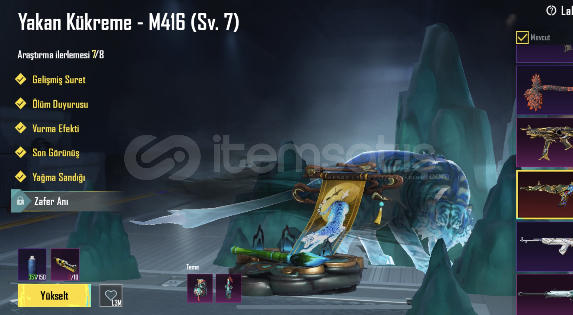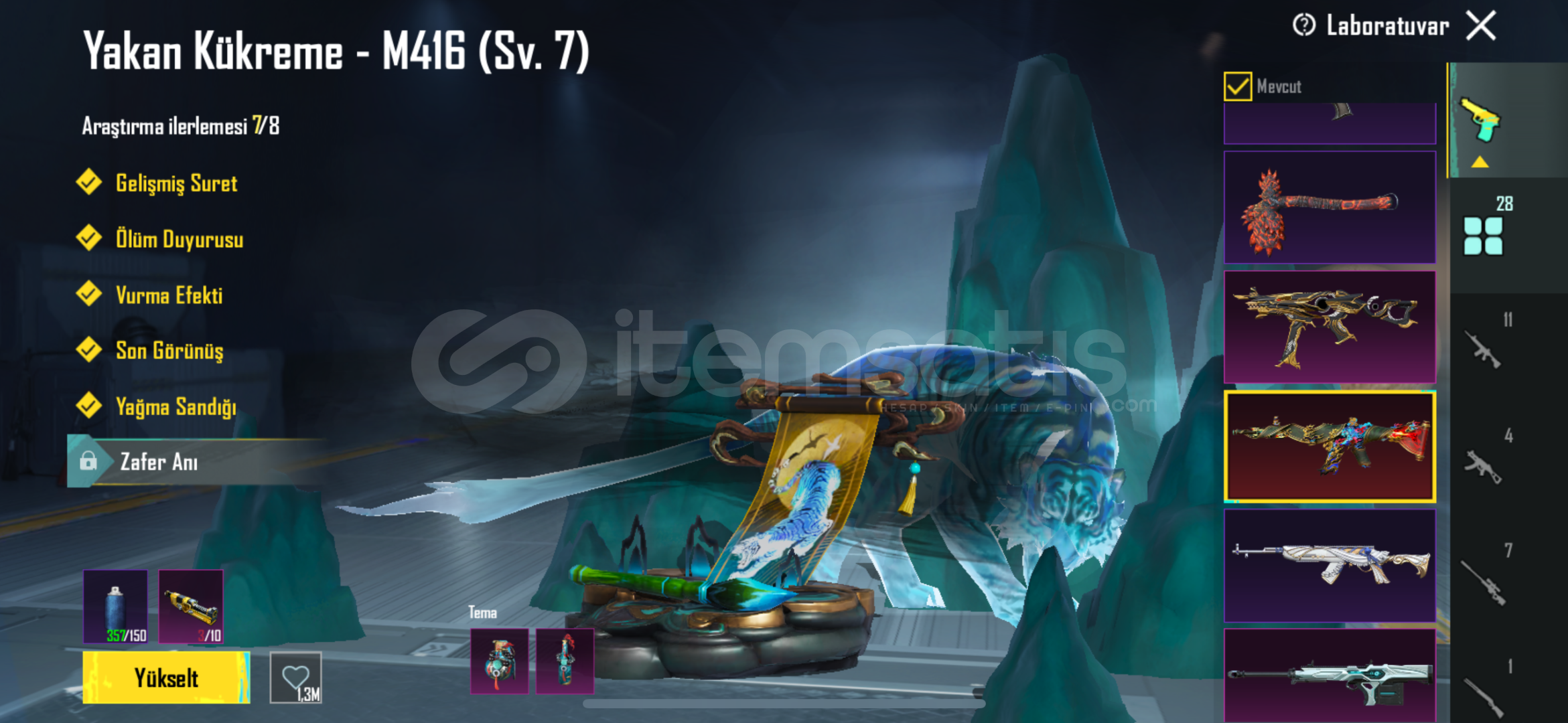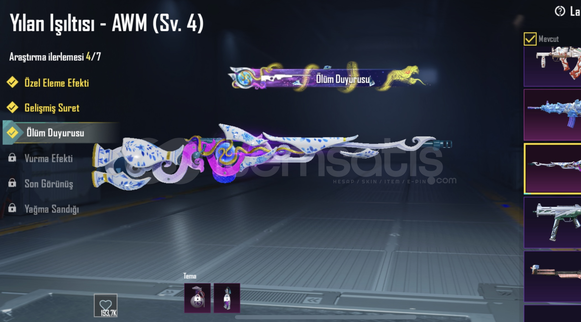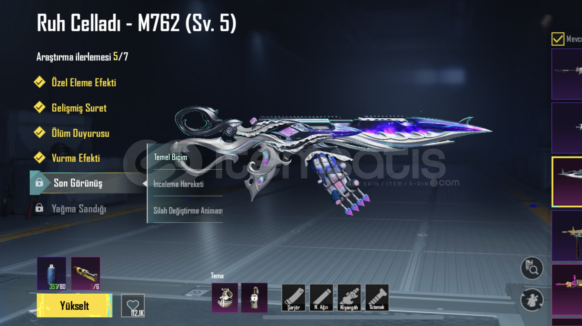 28 yükseltilebilir 11 ölüm mesajlı Ruh celladı m762 5sv ölüm duyuruluMama tabancası scar-l  3sv ölüm duyurulu Gece goncası aug 5sv ölüm duyuruluKahramanlık ağıtı AVM 4sv ölüm duyuruluZincirli cehennem uzi 5sv ölüm duyurulu Ruhbiçen ump 5 sv ölüm duyurulu Yakan kükreme m416 maxxYılan ışıltısı AVM 4sv öl...