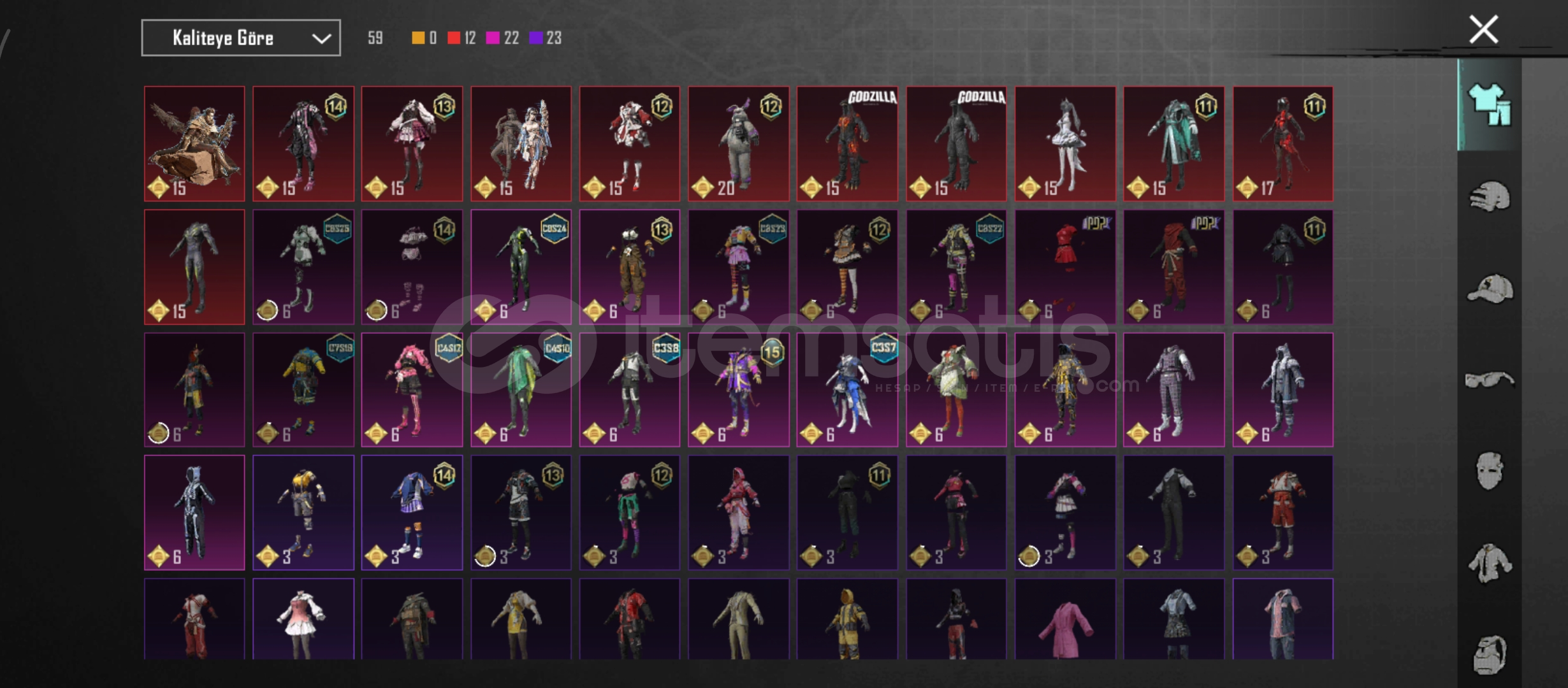 Medyum başlığıİşgalcili hesap4 motorYükseltilebilir silahlar,arabalarTek bağGodzilla çantası,kostümü felan varPazarlık payı var dediğim gibi uygun fiyatlı